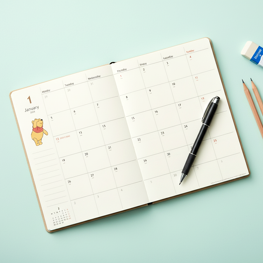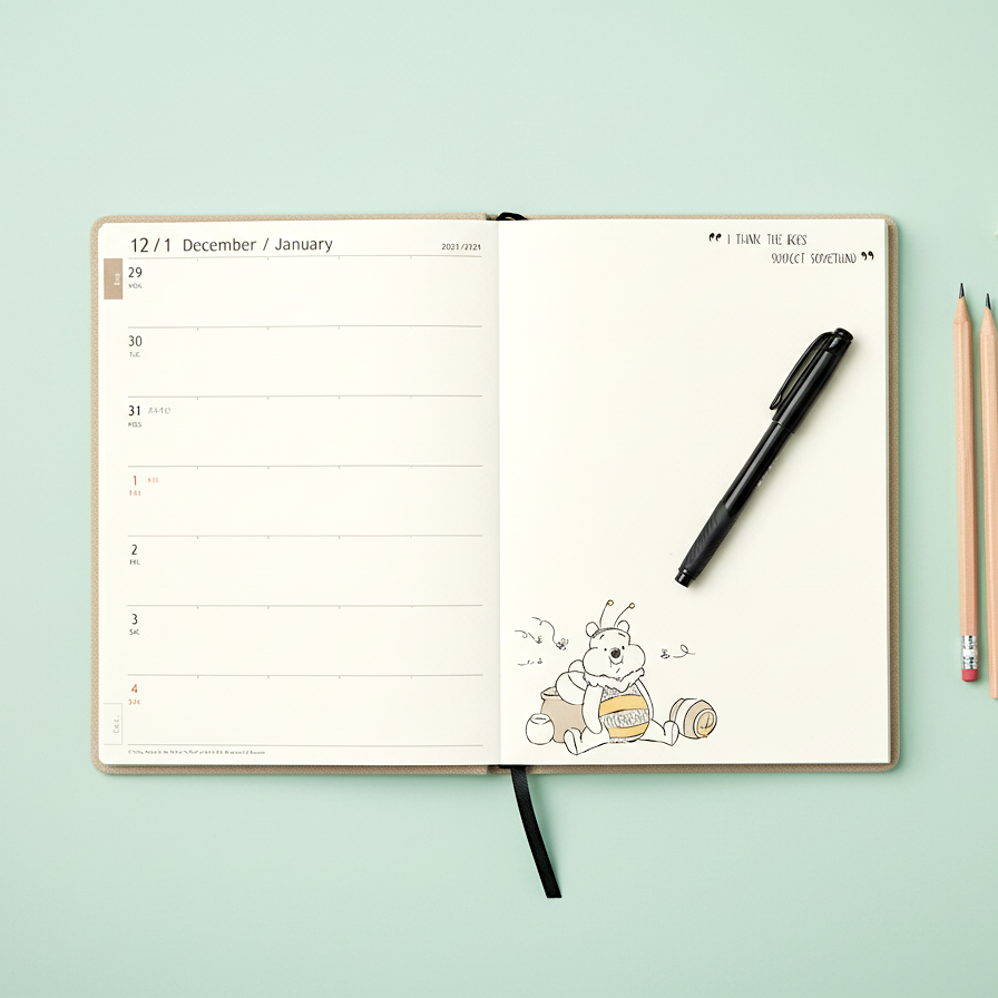 Plan your days with warmth and wisdom—just like Pooh, always making time for friends and simple joys! 🍯🌸