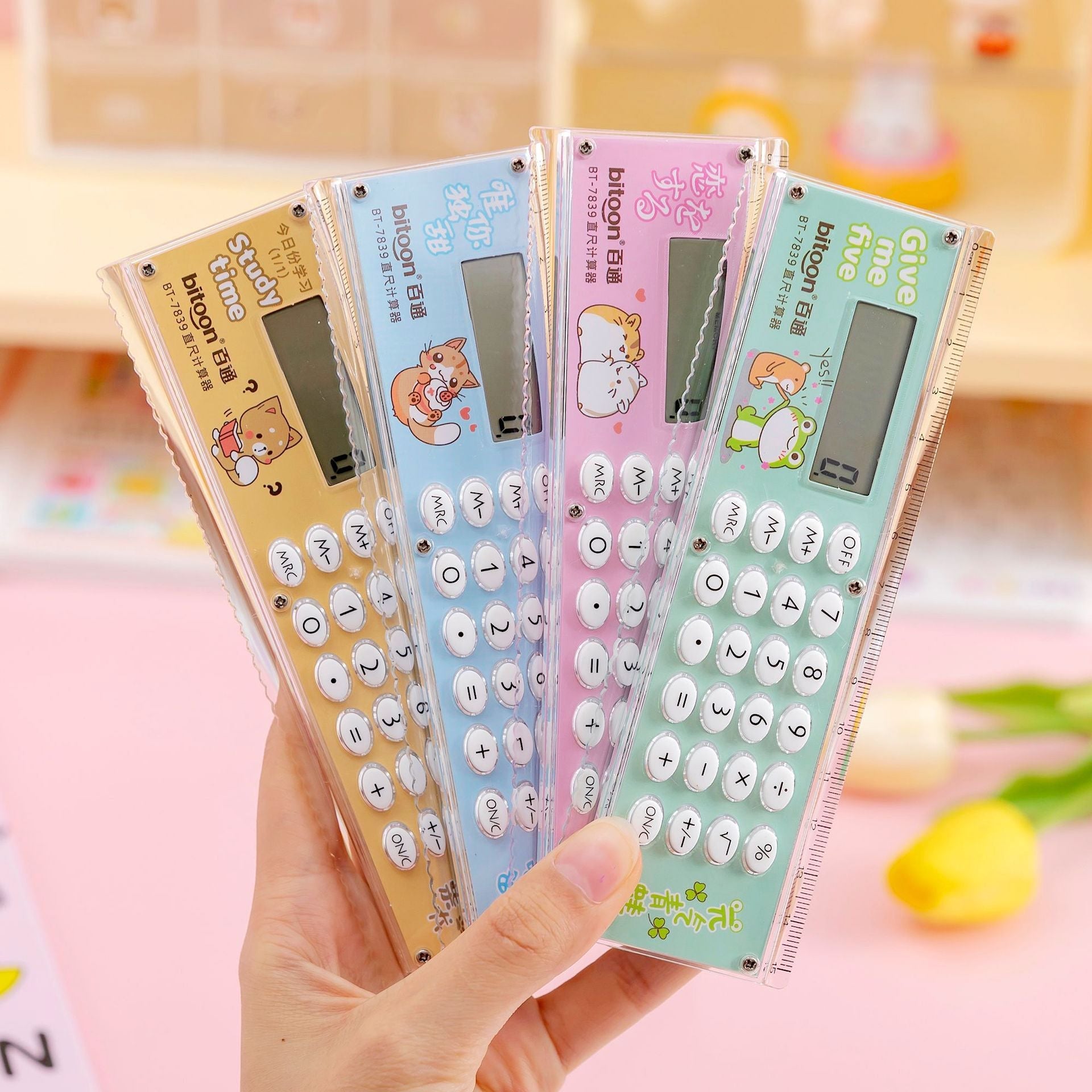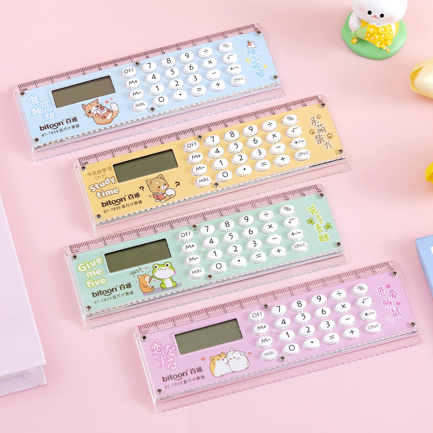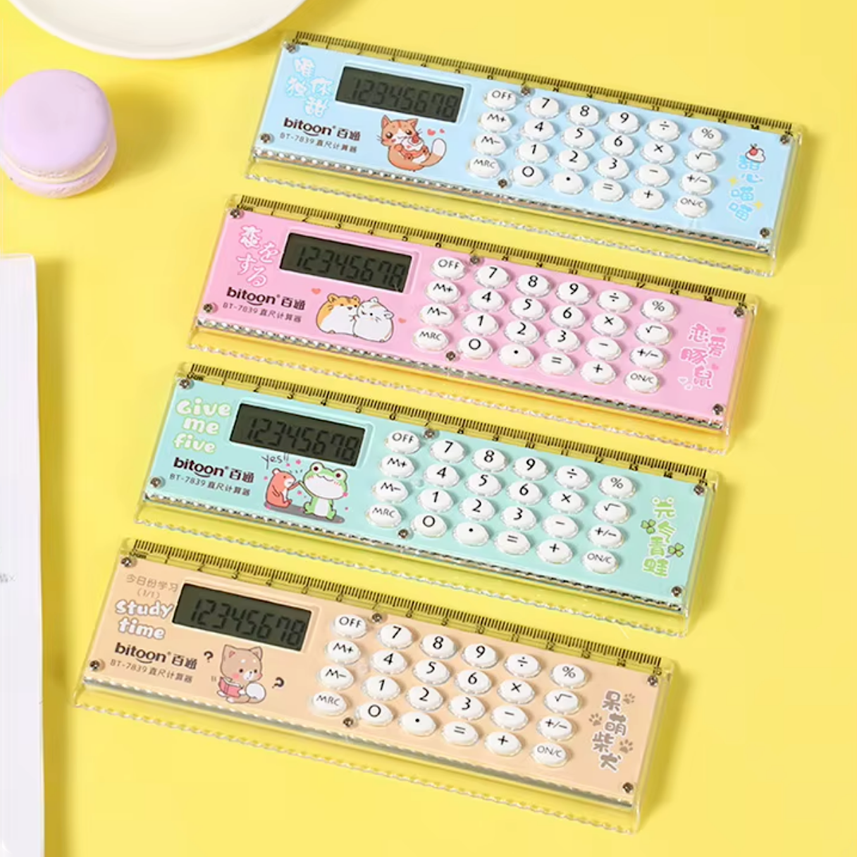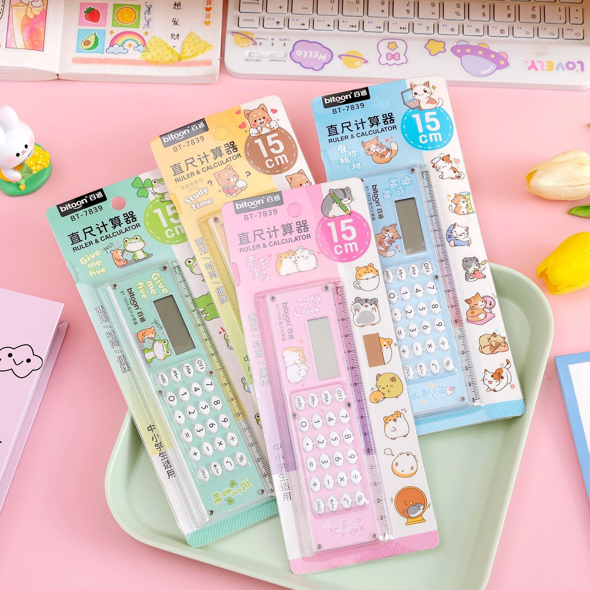 Make studying extra adorable with the Bitoon 2-in-1 Calculator Ruler! This pastel-colored multifunctional tool combines a 15 cm transparent ruler with an 8-digit calculator, perfect for math class, journaling, or budgeting on the go. Each color option features a cute animal friend — from playful kittens to smiling frogs — adding a dose of fun to every calculation. The soft silicone buttons are comfy to press, and the external battery design means quick, easy replacement when needed. Compact, lightweight, and full of charm, it’s your new must-have for school or your desk setup! 🐾