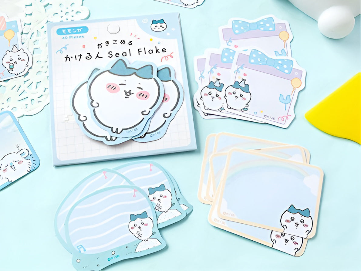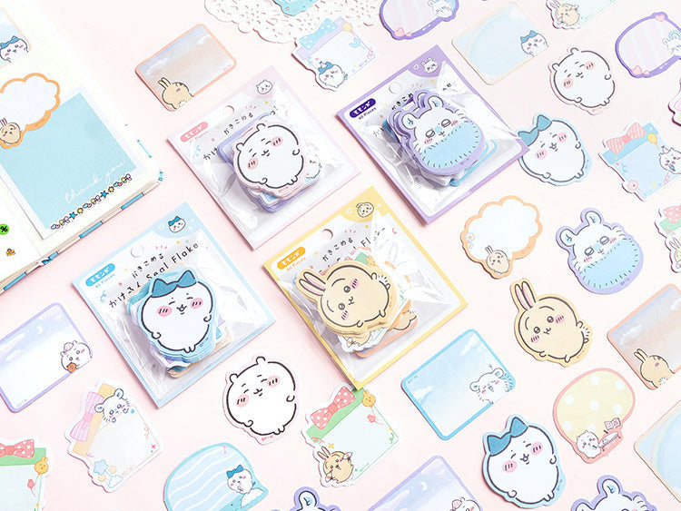 Bring cuteness overload to your stationery stash with these Chiikawa Large Flake Stickers! Each pack includes 40 writable stickers featuring your favorite Chiikawa friends — fluffy hamster, bunny, and bear — in soft pastel hues of pink, blue, and purple. Perfect for journaling, decorating letters, or adding a cheerful touch to planners, these stickers mix charm and creativity in every flake! 🌈✨