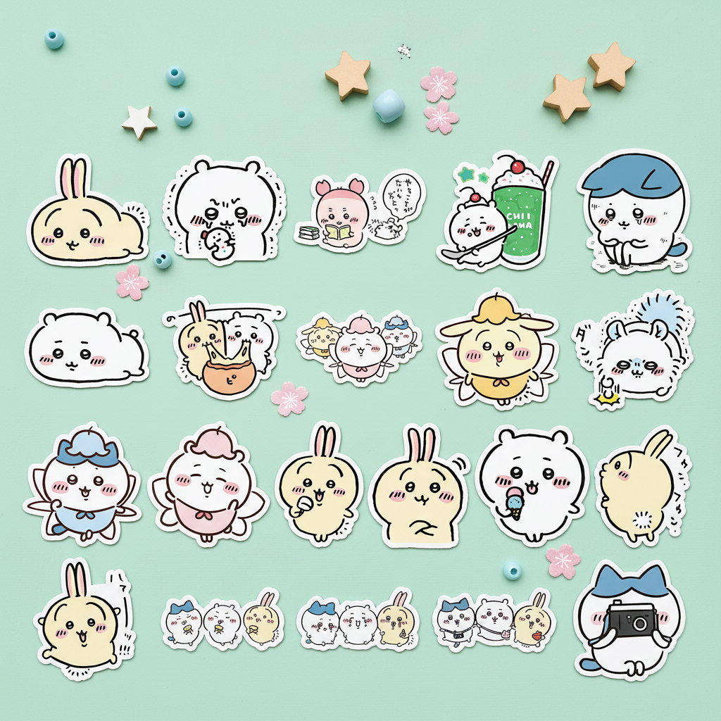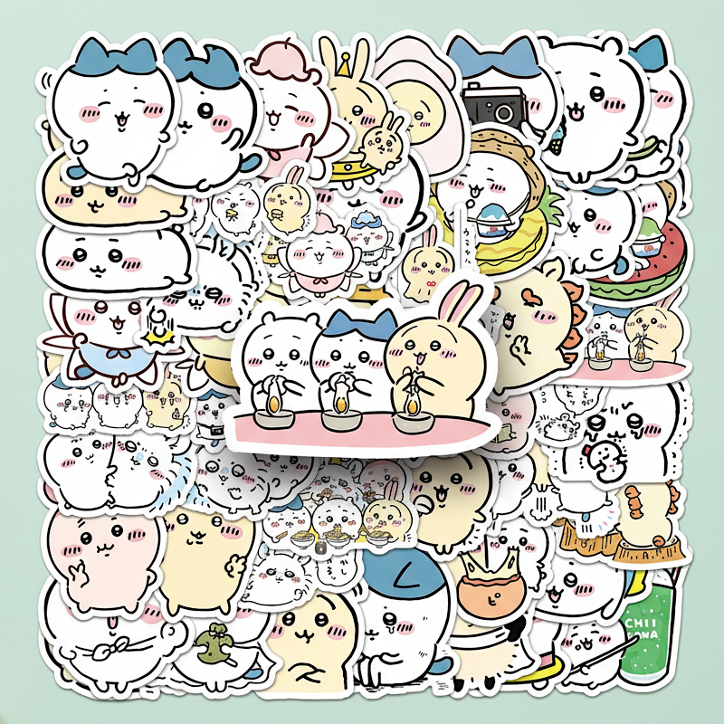 ✔ 50 Unique Designs – No repeats! Each sticker has its own adorable Chiikawa scene 🐭🐰🐻