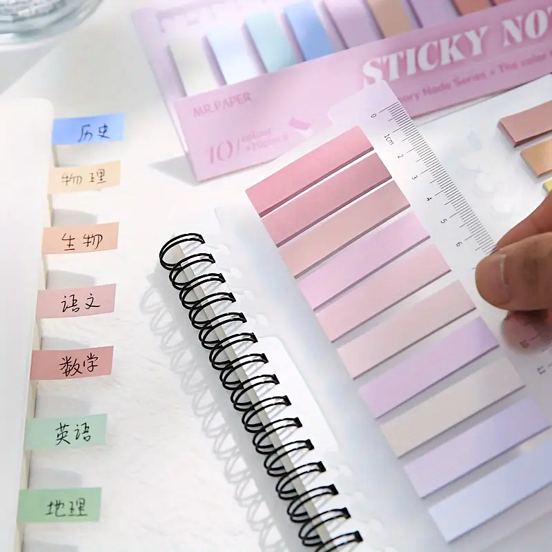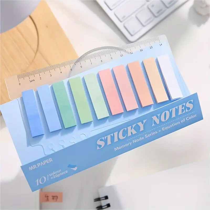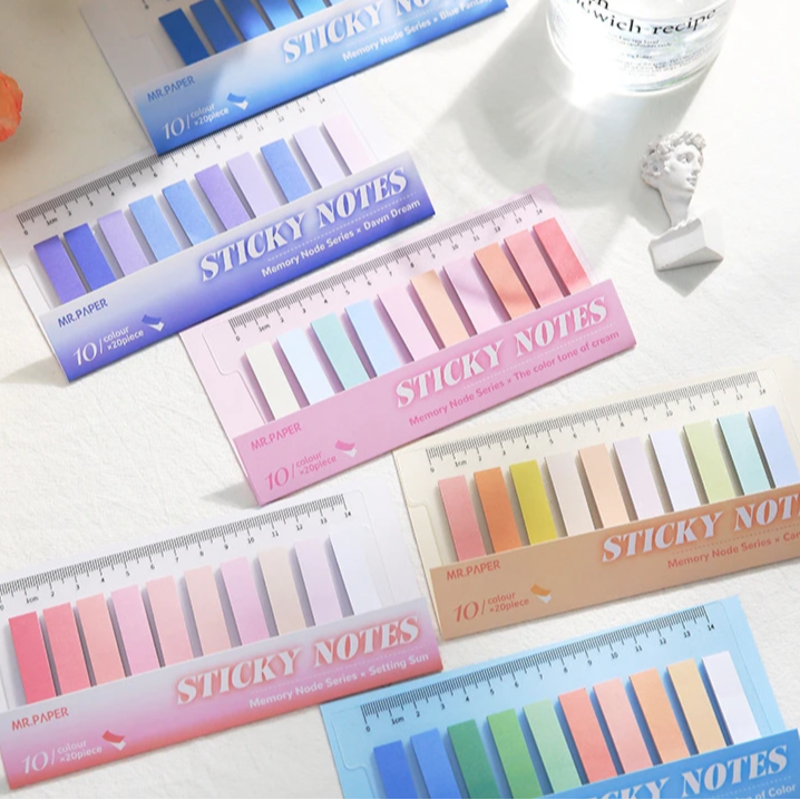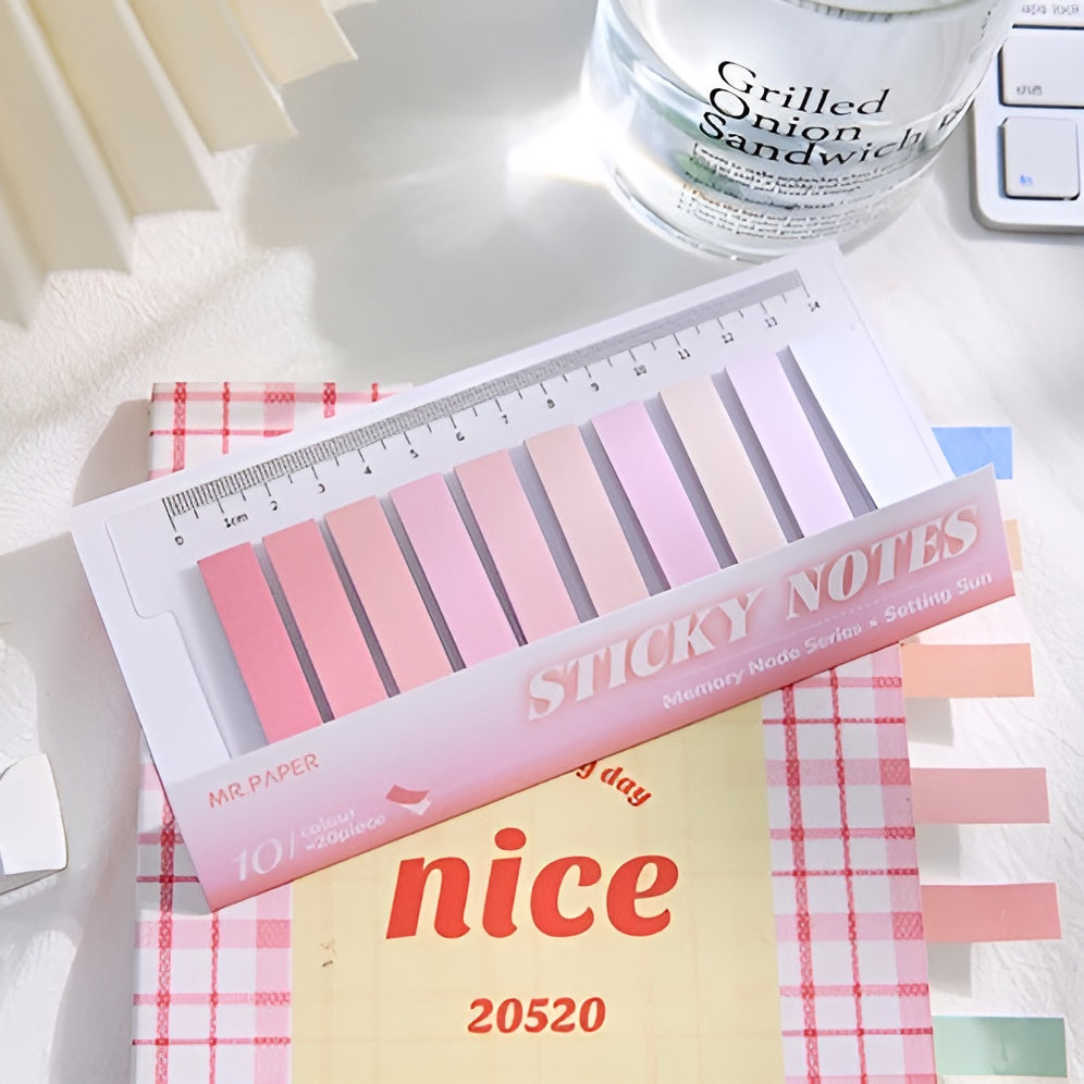 Brighten your study sessions and color-code like a pro with this ultra-handy sticky tab set! Each pack features 10 dreamy pastel colors (20 sheets each!) and comes mounted on a clear 14 cm PET ruler you can pop right into your spiral notebook. They're writable, portable, and perfectly pretty—your new secret to tidy notes and happy highlighting! 🖊️🌸