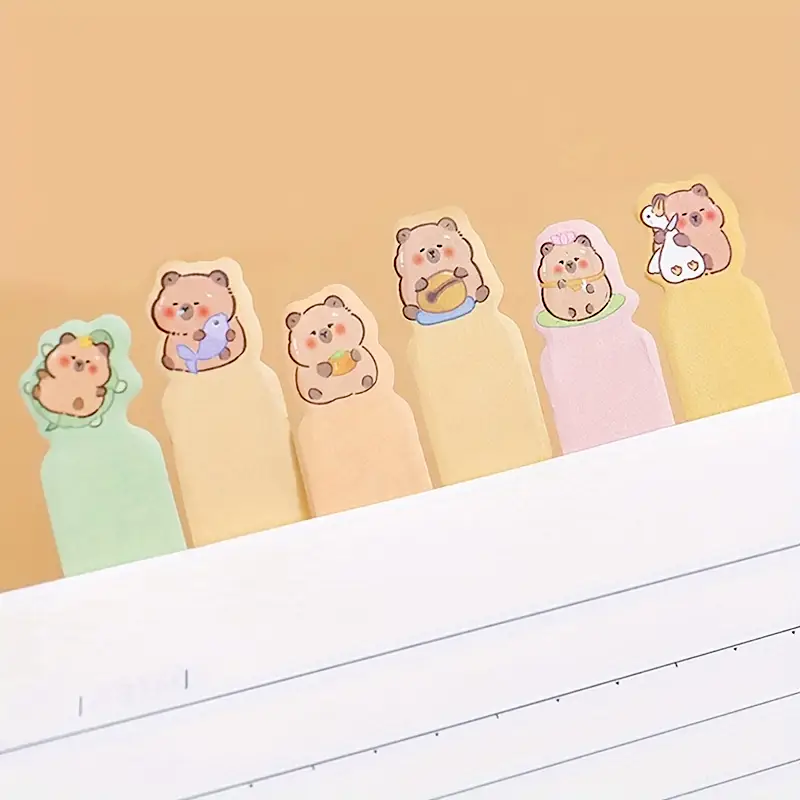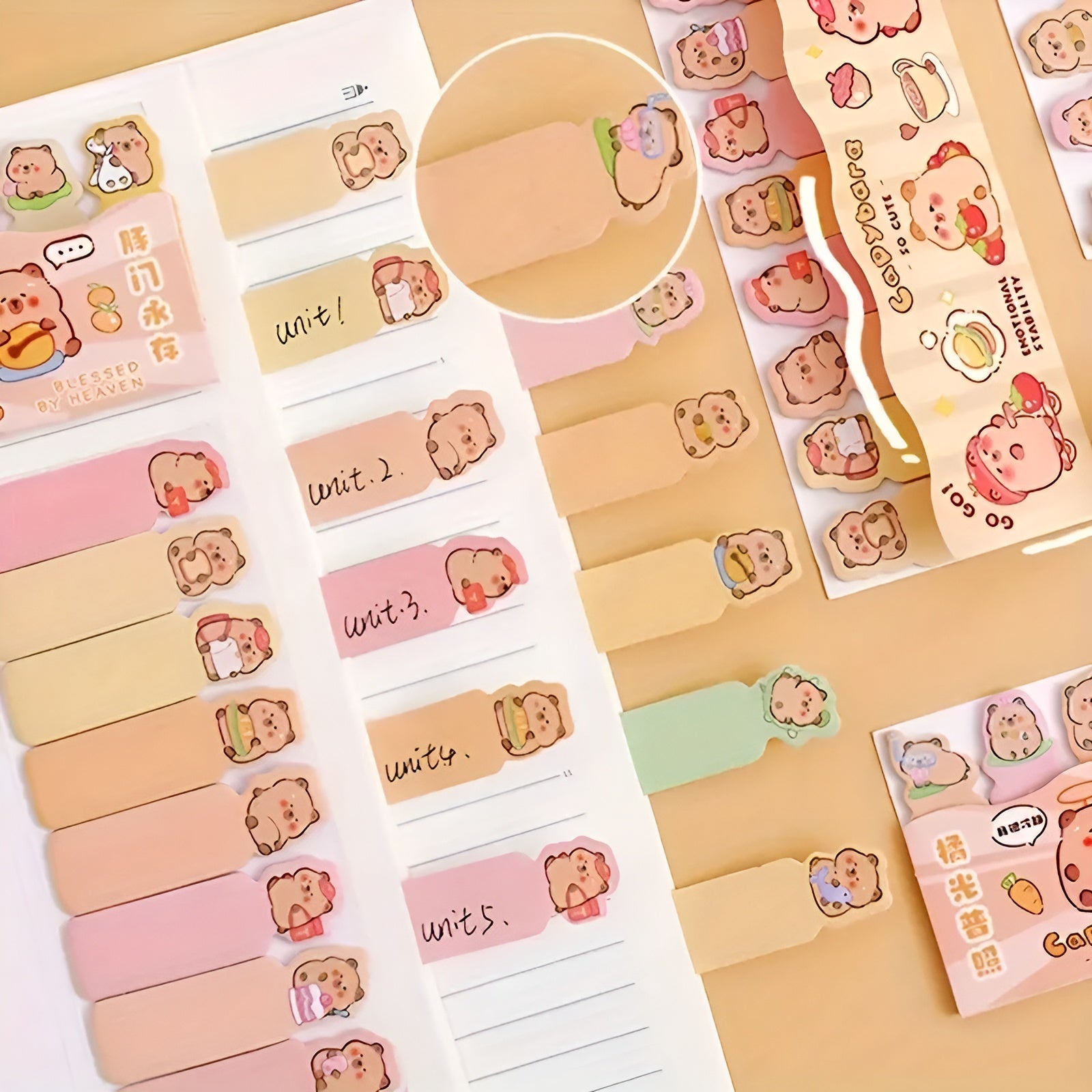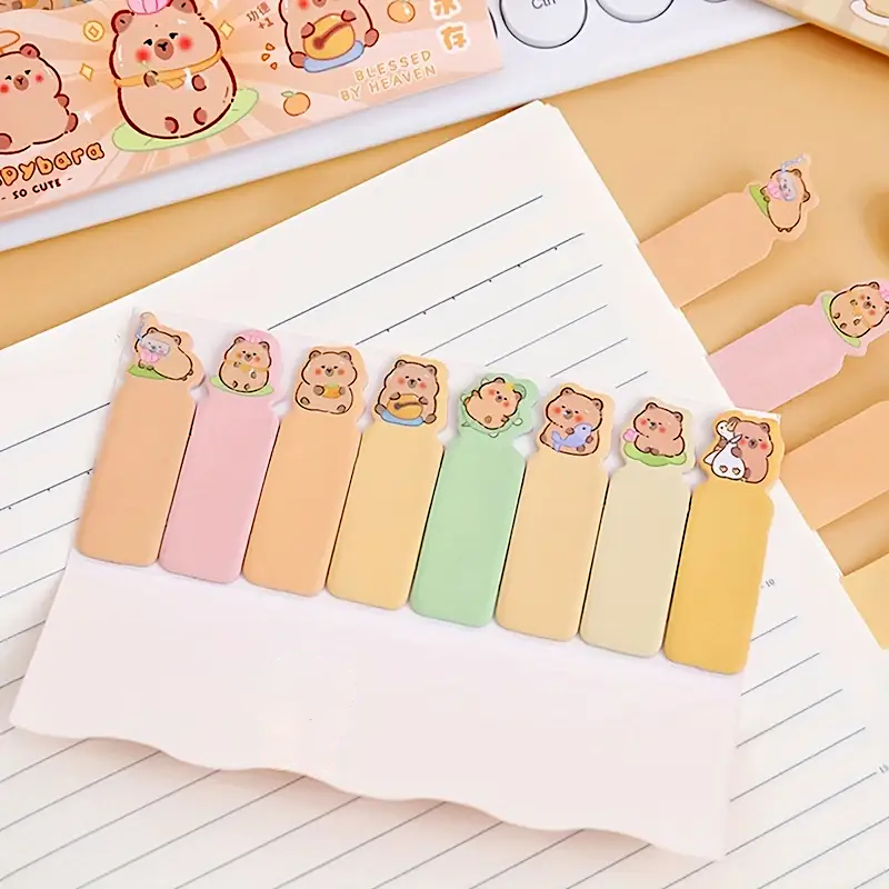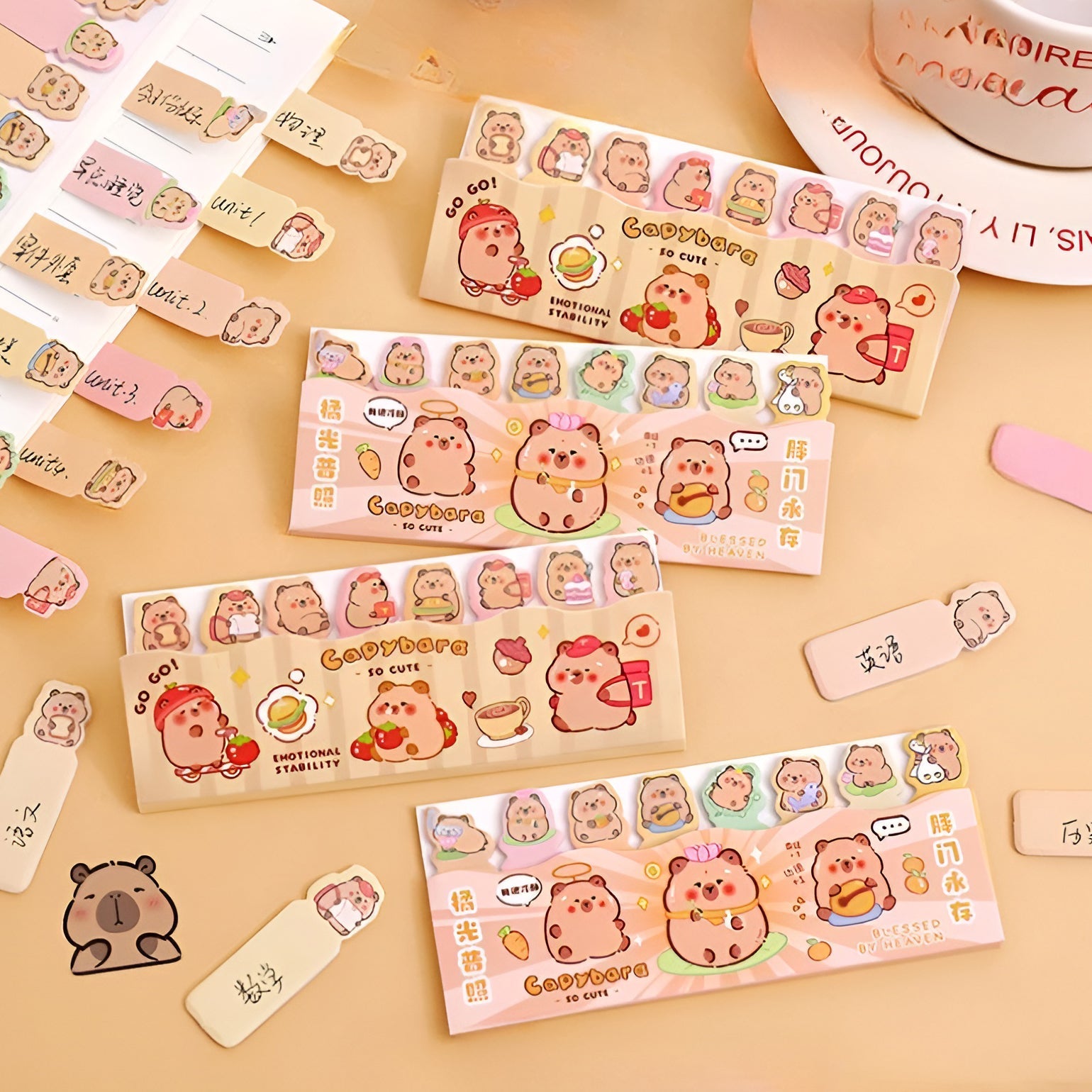 Organize your books, notes, and planners with these Cute Capybara Index Sticky Notes! Each tab features a chubby little capybara on one end—whether it’s sipping tea, carrying books, or just being its adorable self. Available in two pastel-themed designs, these sticky notes are not only practical but also irresistibly fun. They peel and restick with ease, so you can rearrange and reuse them while keeping your study sessions lighthearted. ✨
