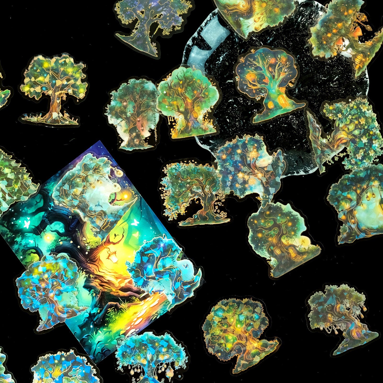 Step into a whimsical woodland with the Enchanted Forest Holo Stickers! From glowing trees with hanging lights to floral-filled wonders, each design brings a sprinkle of forest magic to your pages. With holographic shimmer and dreamy details, they’re perfect for crafting a mystical vibe in your journals, planners, or scrapbooks! 🌟🌿