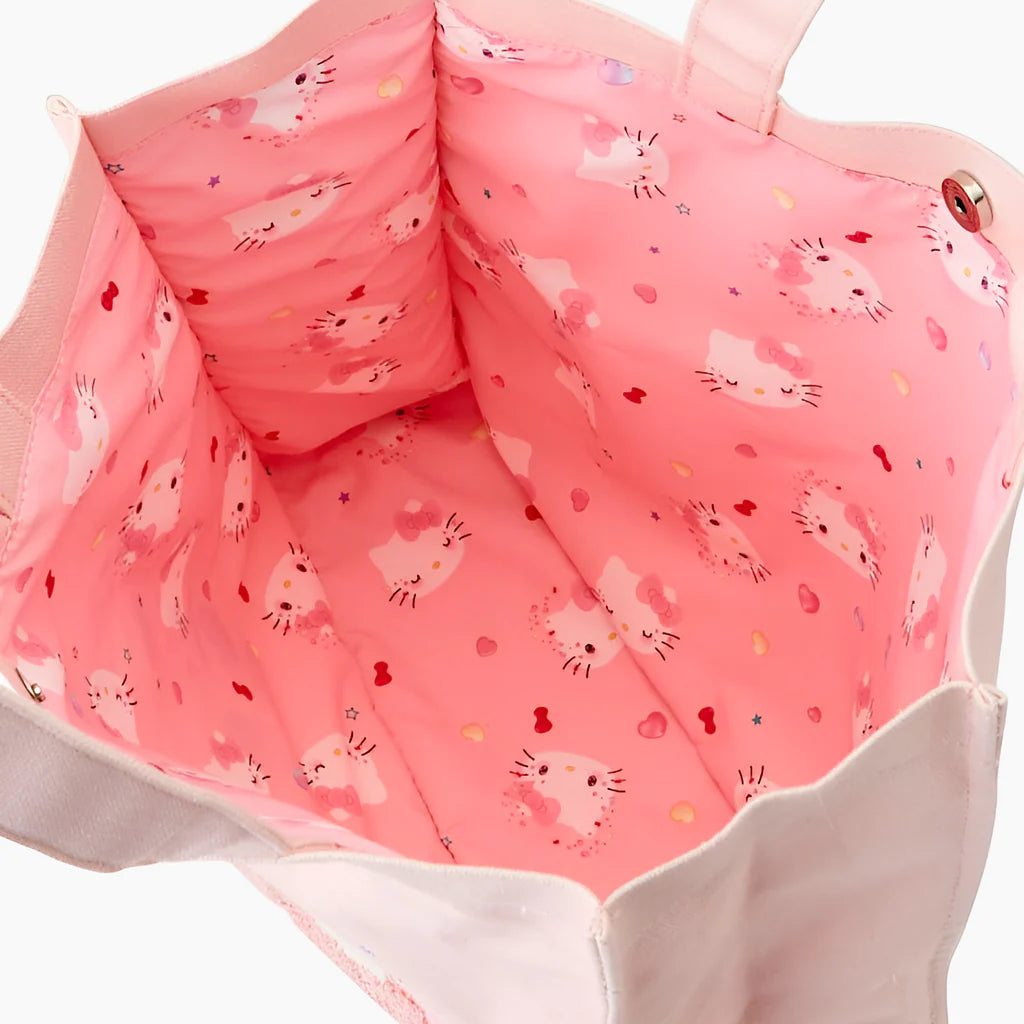✔ Surprise Designer Interior – Fully lined with a gorgeous, coordinated pink fabric featuring an all-over Hello Kitty print