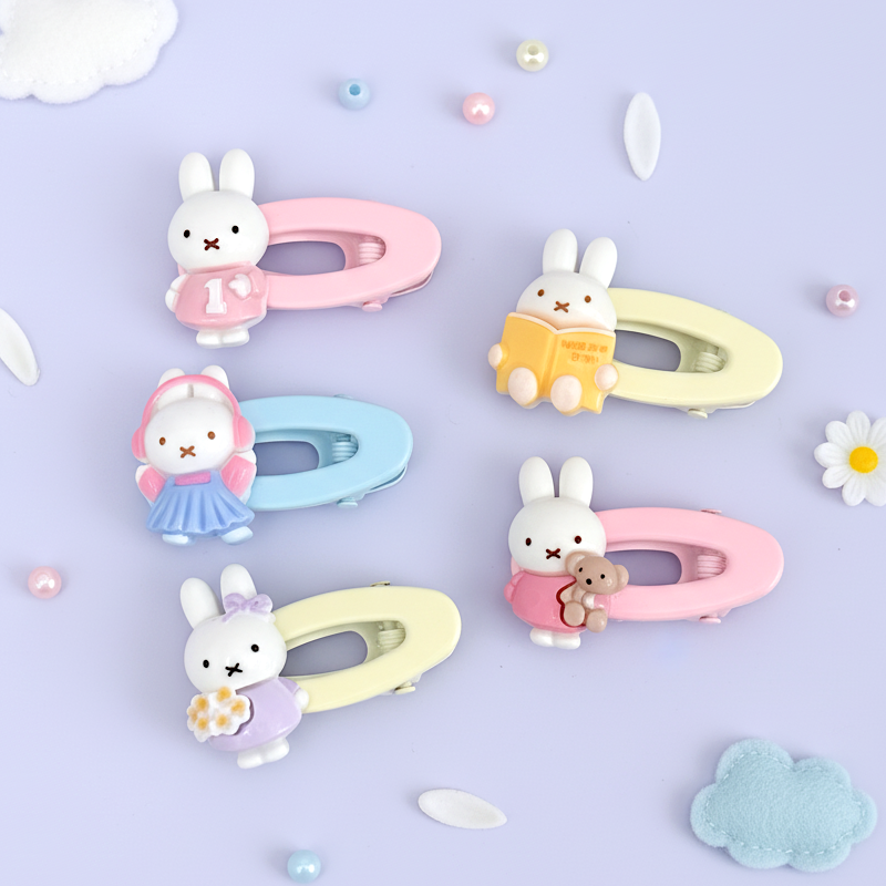Brighten your day (and your pages!) with the sweet Miffy Happy Days Clips. These delightful accessories feature the iconic Miffy bunny in five different adorable scenes, set against soft pastel-colored snap clips. Made with a smooth, high-quality acrylic finish, they are perfectly sized for keeping stray hair away from your face or adding a dose of kawaii charm to your planner pages, book covers, or desk decor. Simple, joyful, and designed for Miffy fans of all ages!