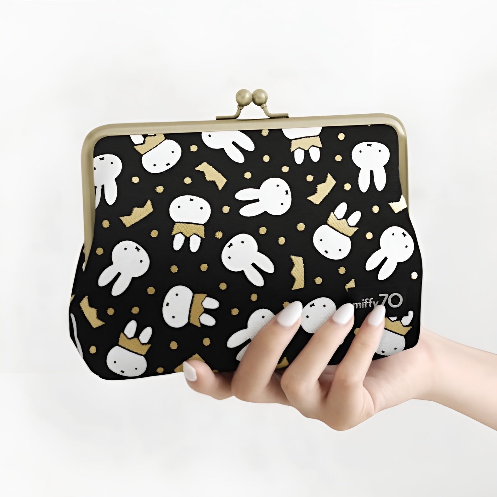 Let your everyday essentials hop into something cuter! This spacious Miffy kiss-lock pouch is part of the limited 70th anniversary collection, dressed in elegant gold foil details and bunny charm. With a roomy interior and bonus side pocket, it’s perfect for organizing makeup, travel minis, or on-the-go must-haves. 💄🎀