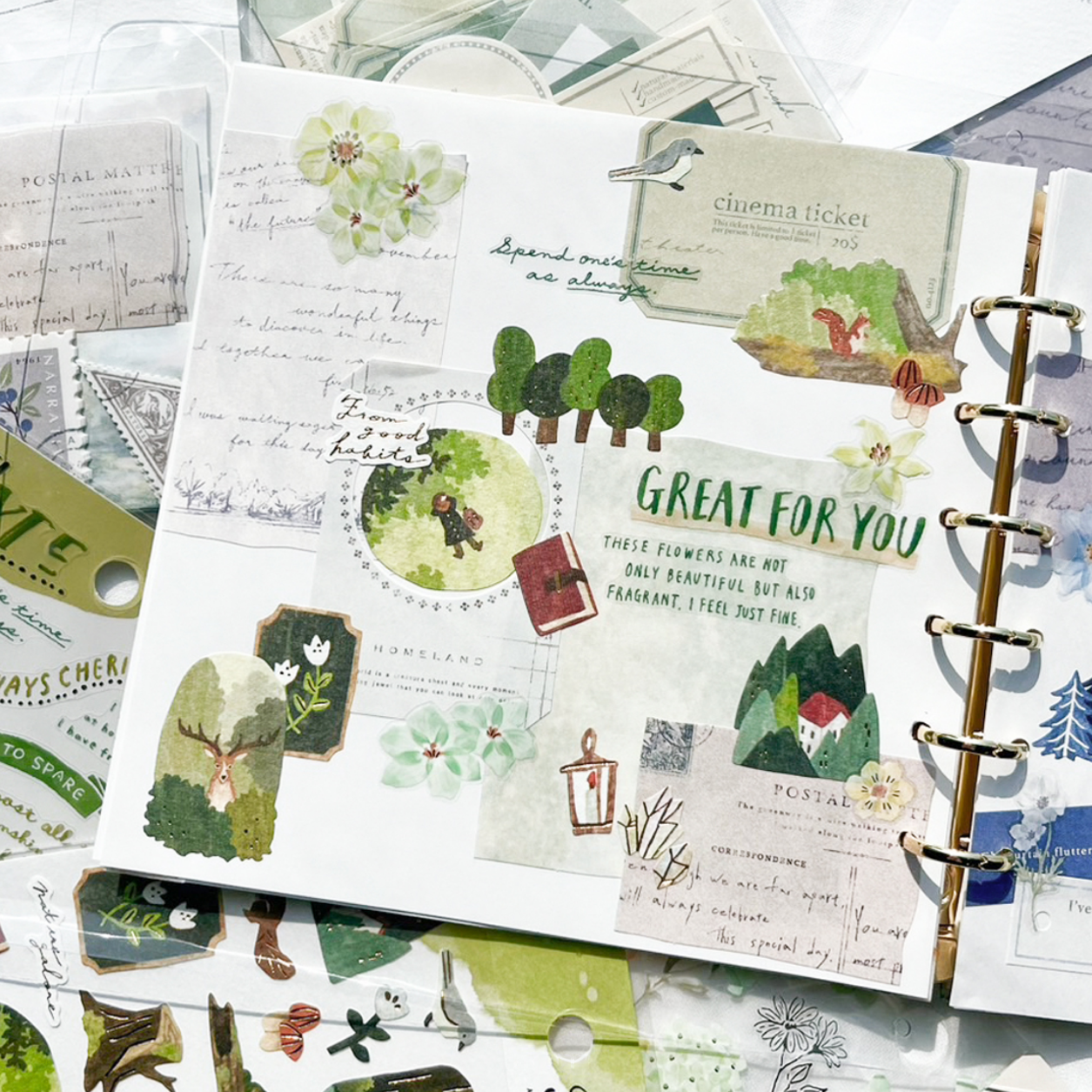 Pack your bags (or your journal!) and embark on a sticker adventure with the Mind Wave Tabi Stickers! These beautifully illustrated stickers capture the magic of travel, with scenes that feel like snapshots from dreamy destinations around the world. From serene lakes and cozy campfires to snowy getaways, each set tells a story of exploration and wanderlust.