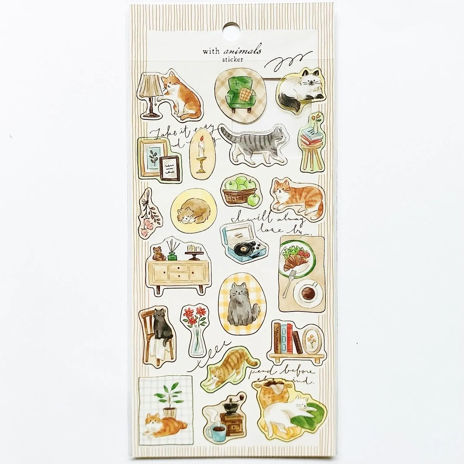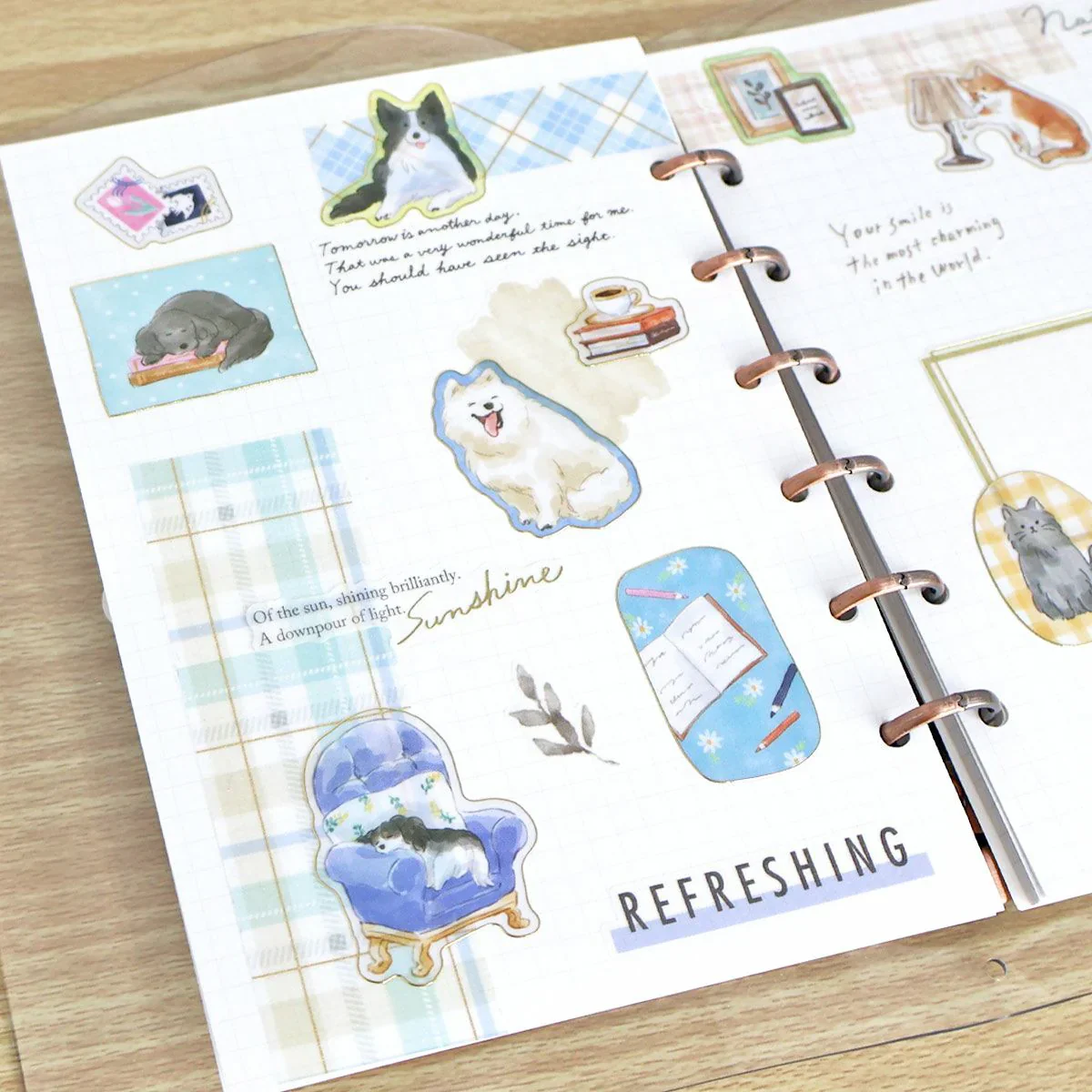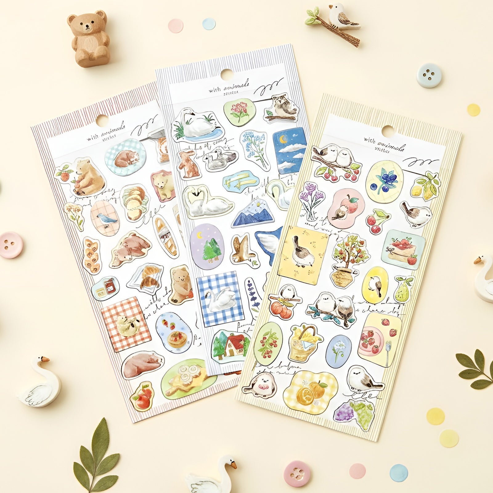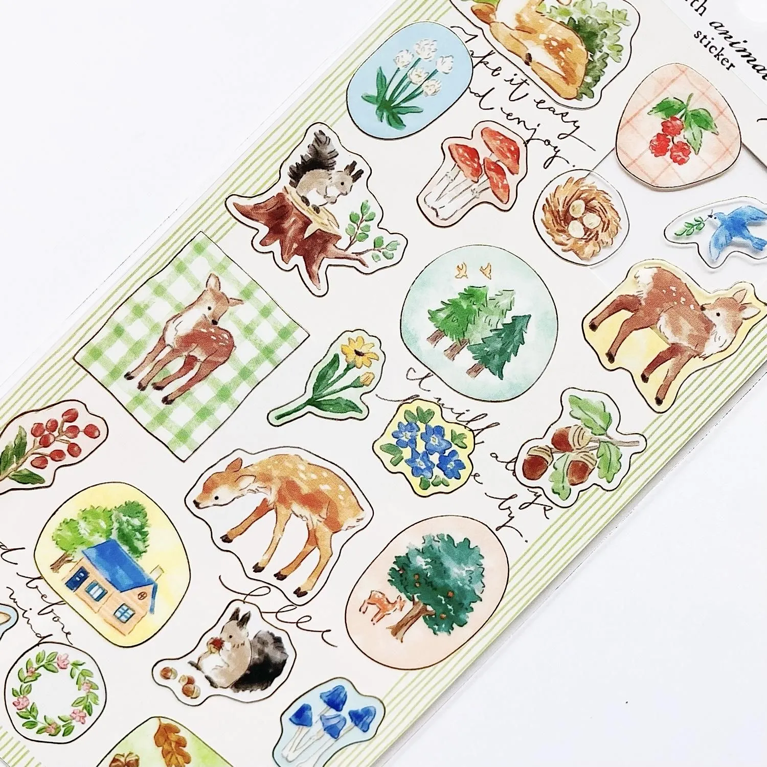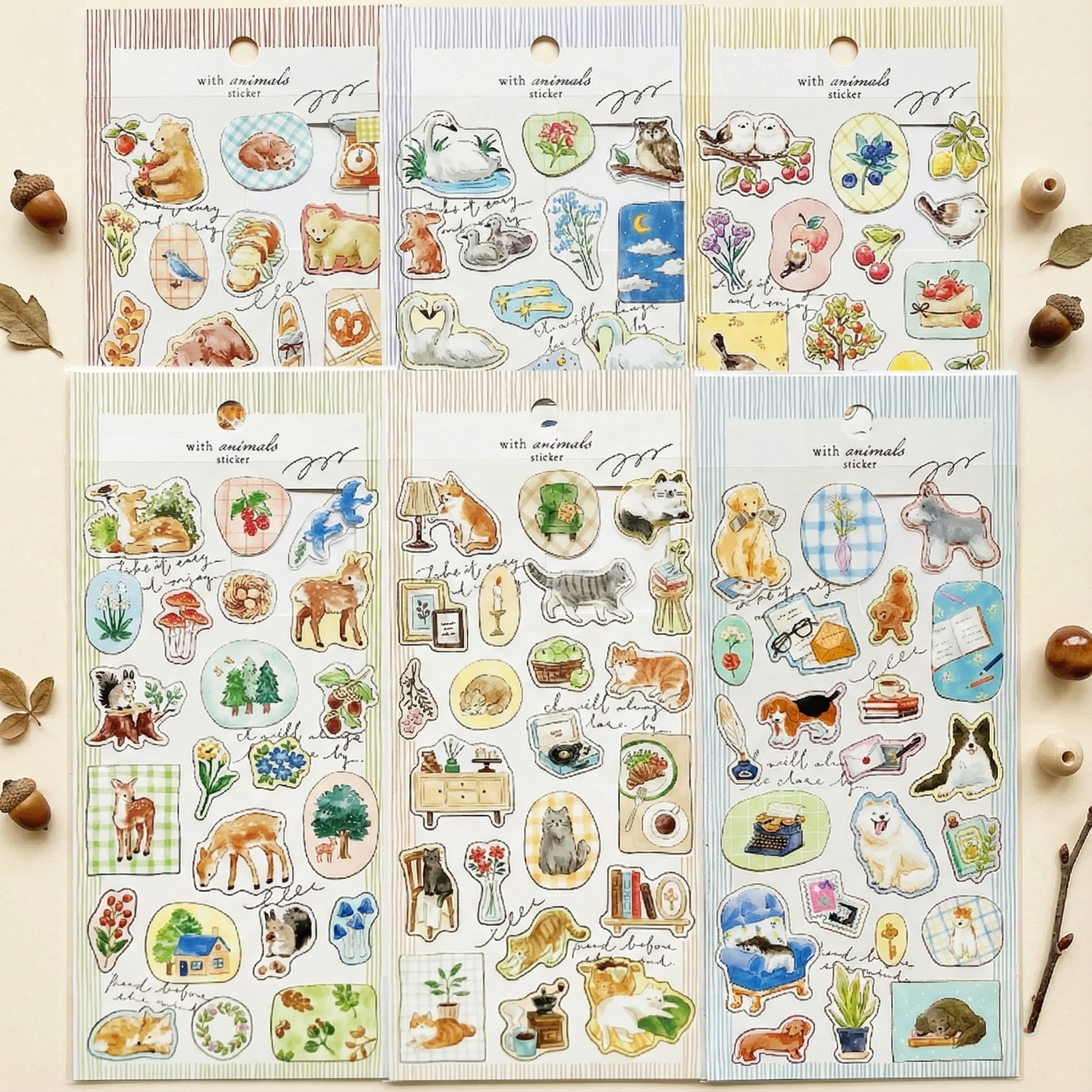 Immerse yourself in the gentle, cozy world of the Mind Wave Illustrated Sticker Sheets. These beautiful, high-quality stickers feature enchanting watercolor illustrations that capture the peaceful daily lives of animals, both wild and domestic (dogs, cats, woodland creatures). Each sticker is elegantly outlined with a delicate gold foil border, adding a premium, shimmering touch to every piece. Perfect for adding unique, aesthetic vignettes to your planner, scrapbook, journal, or letters!