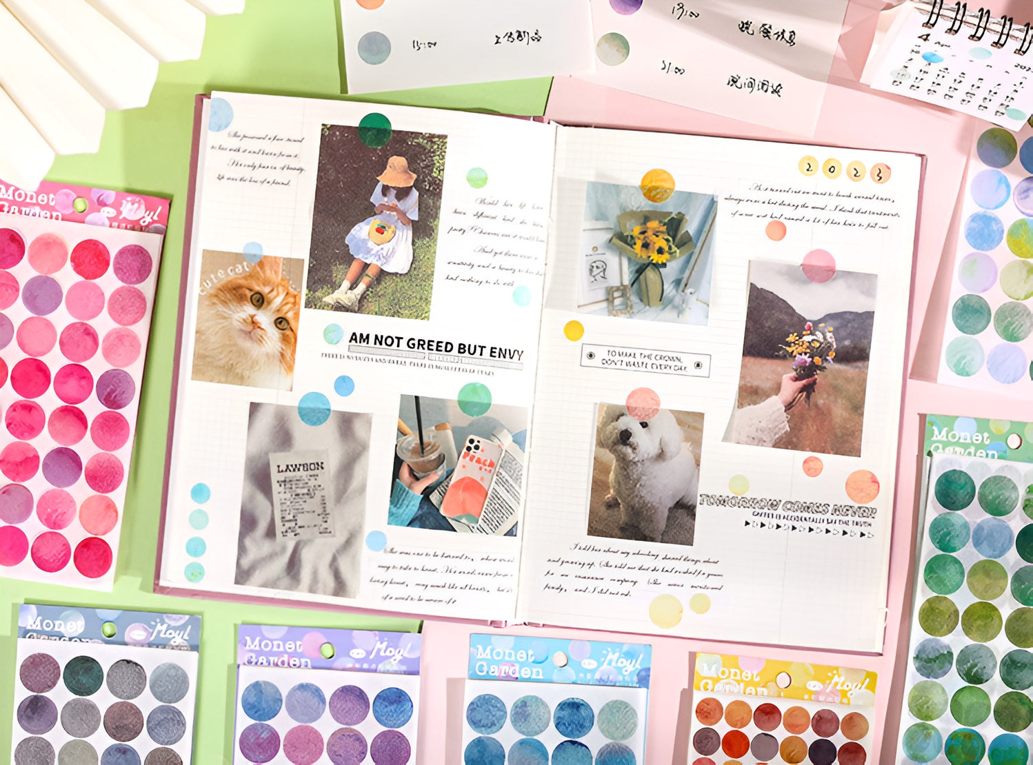 Bring the beauty of watercolor to your creations with the Monet Garden Watercolor Dot Stickers! Featuring over 300 dreamy, die-cut circles in two sizes, these soft watercolor-effect stickers are perfect for layering, accenting, or adding a subtle pop of color to your journal, planner, or scrapbook. Easy to peel and reposition, they offer endless creative possibilities in 6 serene color palettes. 🌸🖌️