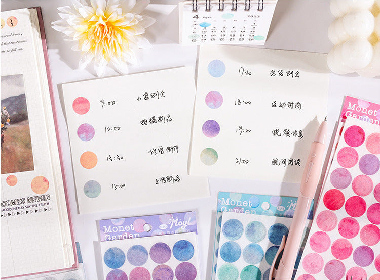 Monet Garden Watercolor Dot Stickers - Set of 6 Sheets