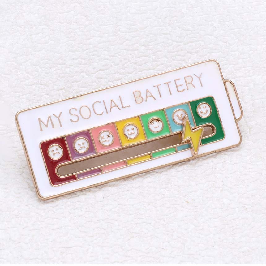 🔋 My Social Battery – Shaped like a battery, this design features a lightning bolt slider and a 7-level meter that ranges from “Running Low” to “Fully Charged.” Perfect for introverts, social butterflies, and everyone in between!