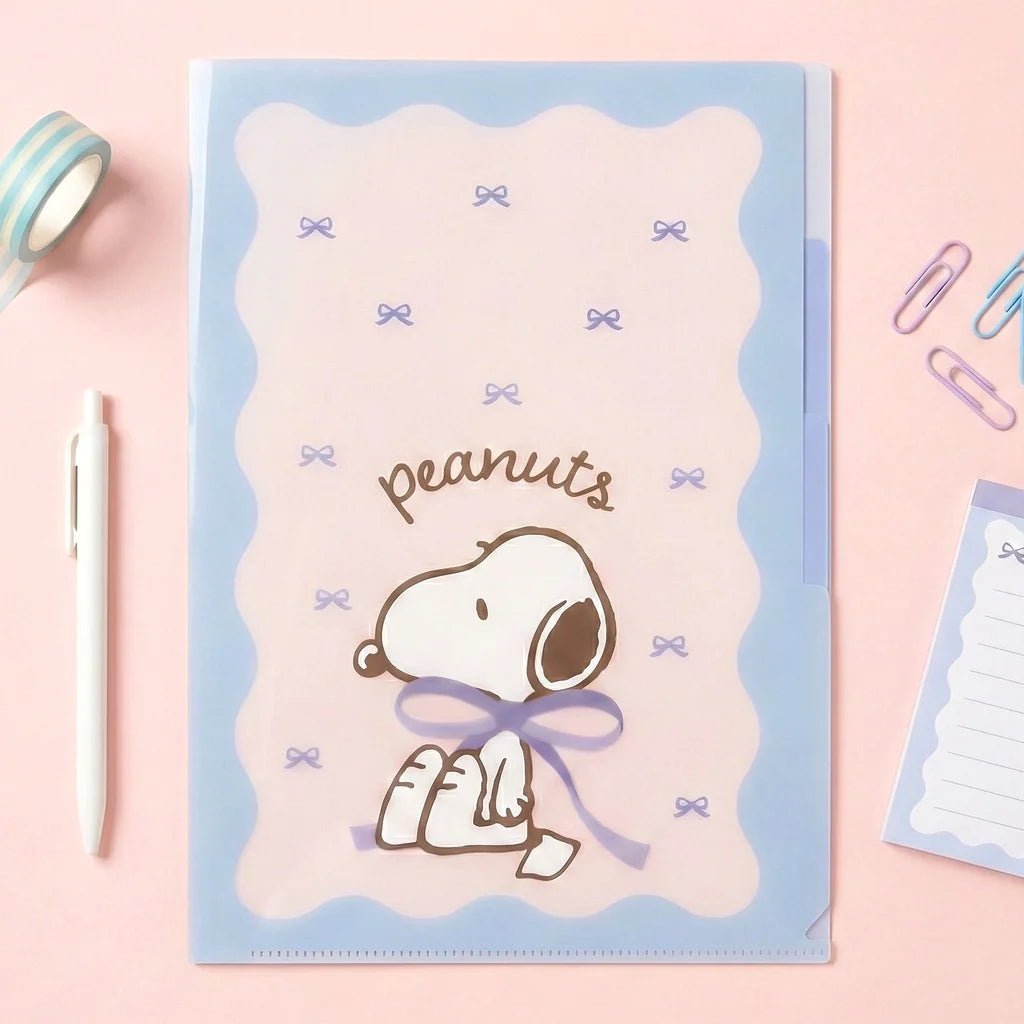 Bring a splash of serenity to your workspace with this adorable Peanuts "Blue Ribbons" A4 folder! 🎀 Featuring the sentimental "You're always on my mind" artwork, this folder showcases Snoopy and Woodstock sharing a sweet moment with elegant blue bows. 🐶 The beautiful wavy border and soft blue palette make this more than just an office supply—it's a little piece of joy for your daily routine. Crafted in Japan with meticulous attention to detail, it’s the perfect way to keep your notes crisp, clean, and perfectly categorized! 📂☁️