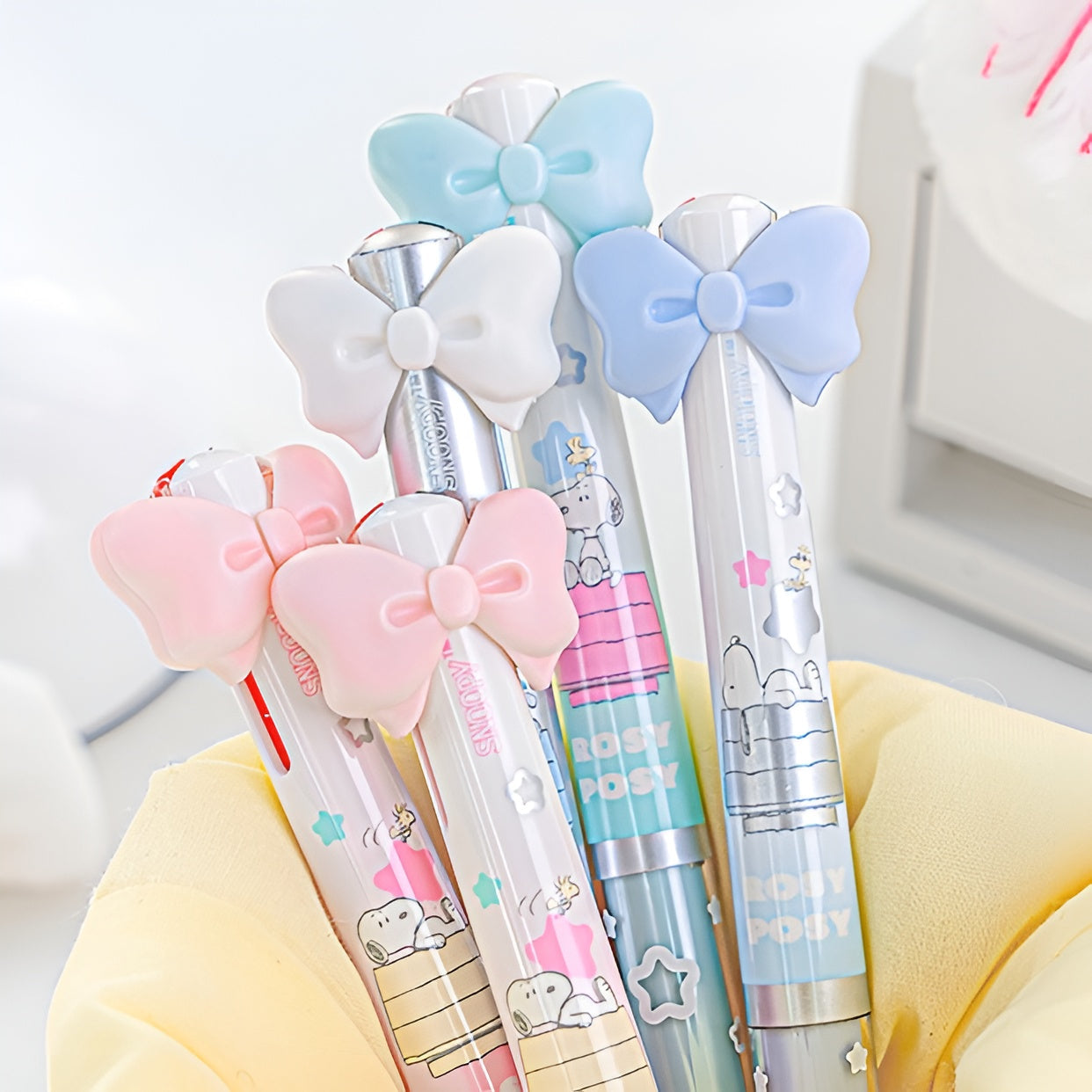 Write in style with the Peanuts Snoopy Bow 2-in-1 Ballpoint Pen! This adorable multi-pen features a charming bow on top—press one side for red ink and the other for black. With its smooth, pearl-finish body, silver accents, and sweet Snoopy + star illustrations, it’s the perfect blend of function and flair. 🐶⭐🖊️