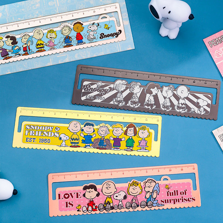 Add a touch of whimsy to your stationery with the Peanuts Snoopy Die-Cut Bookmark Ruler! This clever 2-in-1 tool measures up to 12 cm and doubles as a charming bookmark, featuring beloved Peanuts characters in a sleek die-cut design. The wavy-cut bottom lets you draw fun curved lines, while the slim profile fits perfectly in any book or planner. Available in three dreamy color combos: rose gold & pink, gold & yellow, and silver & blue. 🐾📚