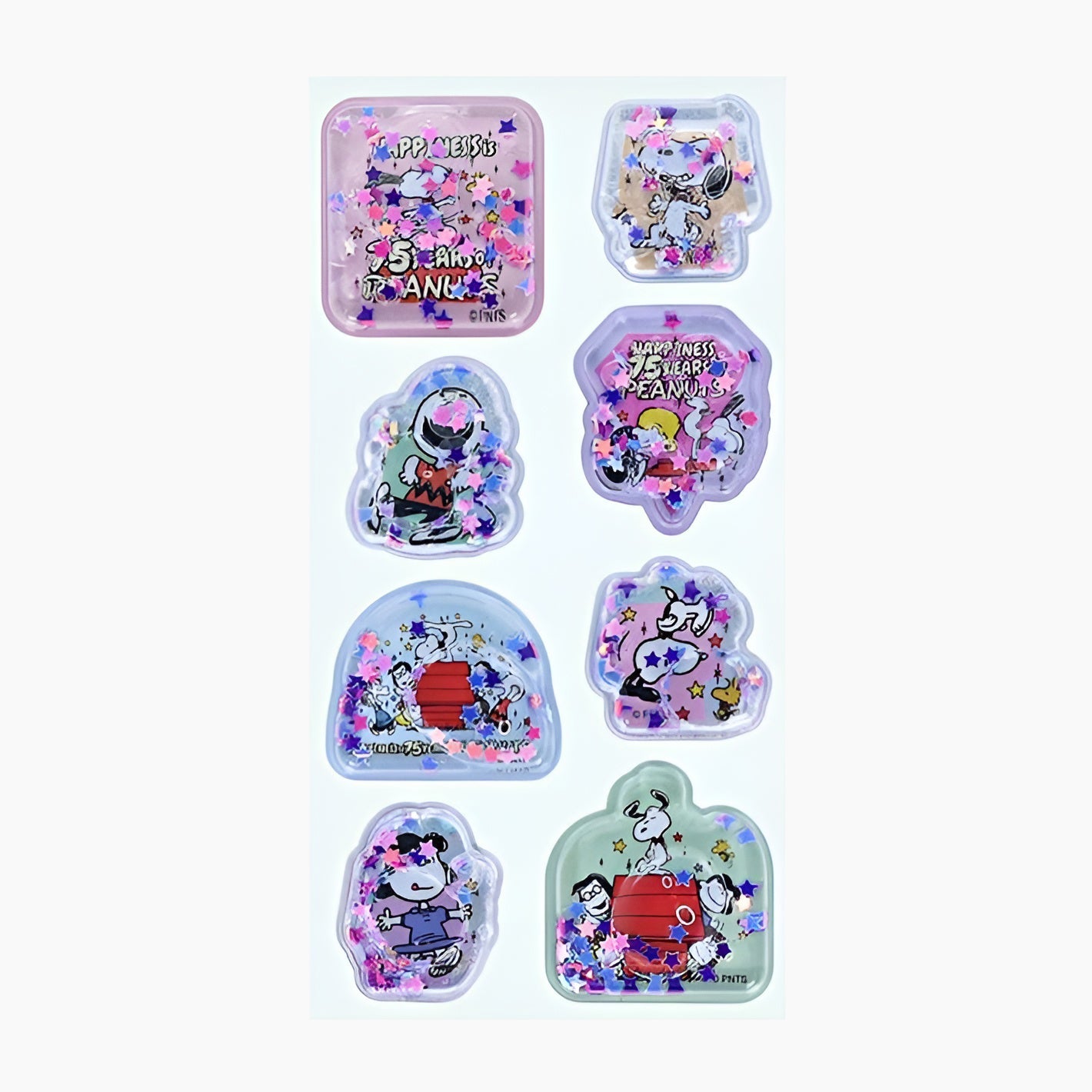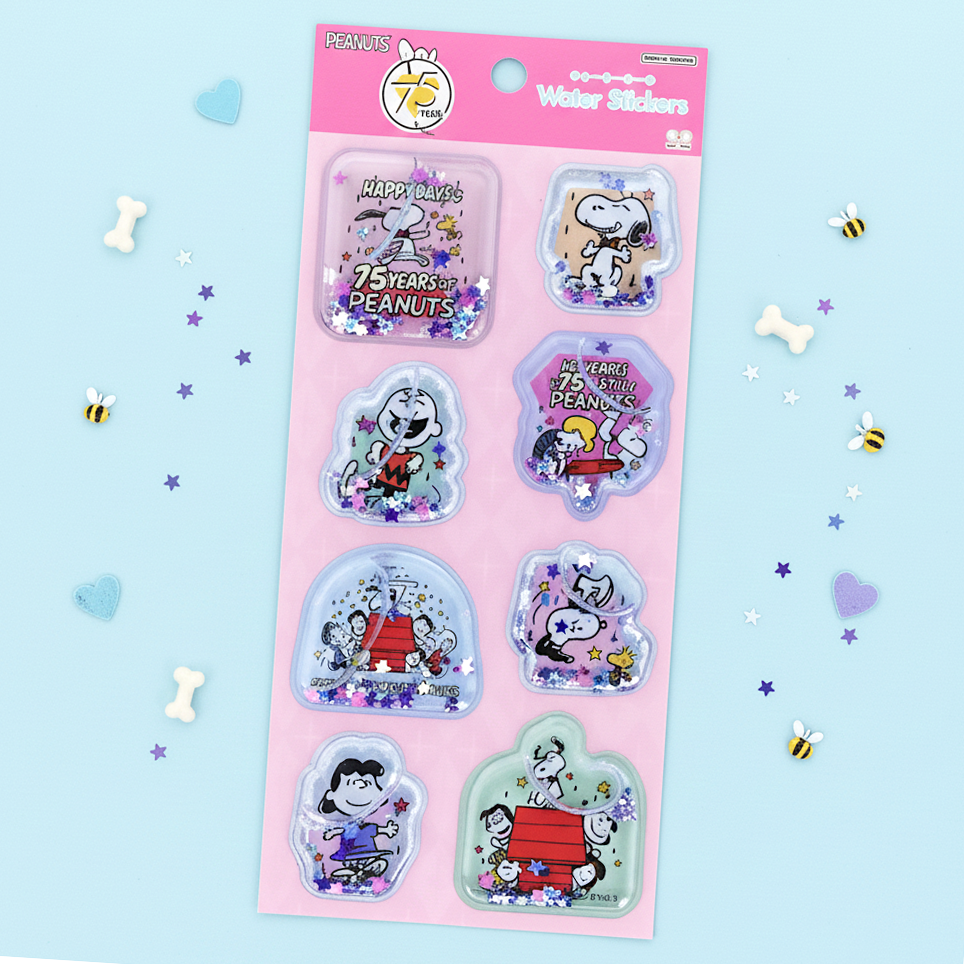 Celebrate three-quarters of a century of Peanuts charm with the Limited 75th Anniversary Edition 3D Water Stickers! This highly collectible sheet features 8 unique, water-filled stickers showcasing the gang in classic scenes, complete with special 75th Anniversary branding. Watch the liquid and vibrant star sequins swirl, creating a magical, eye-catching 3D effect. These premium, made-in-Japan decals are a must-have piece of history for any dedicated fan—get them before they’re gone forever!