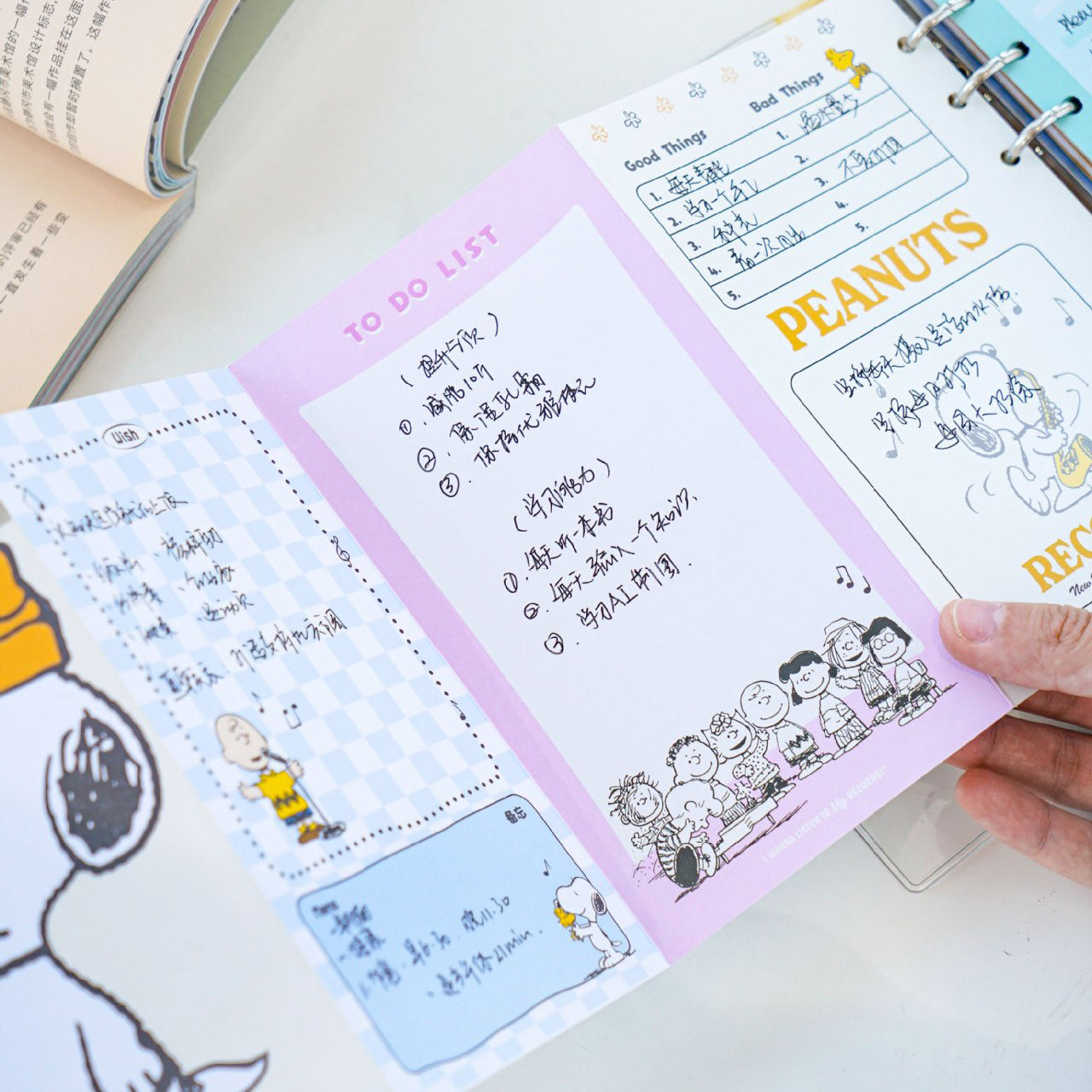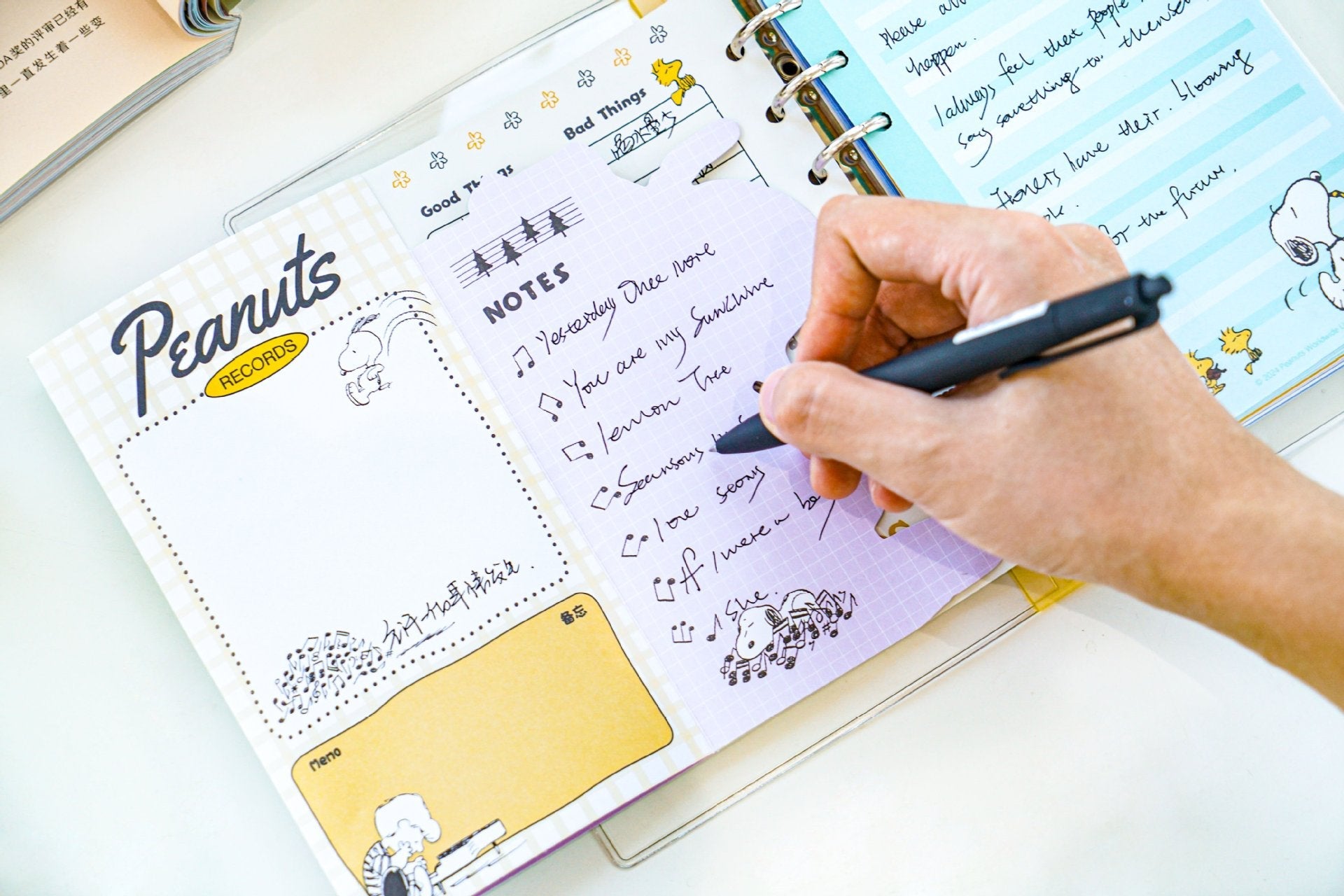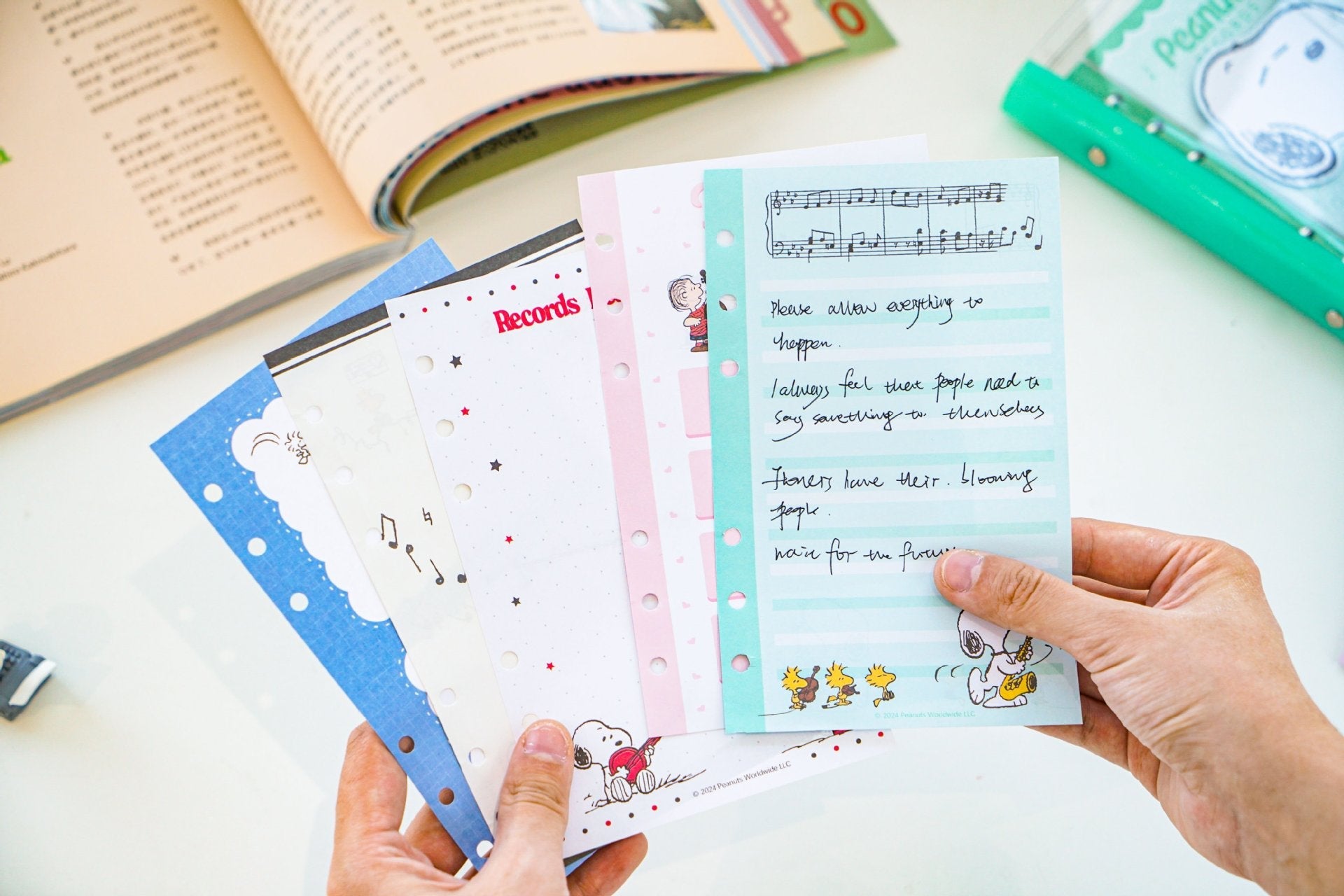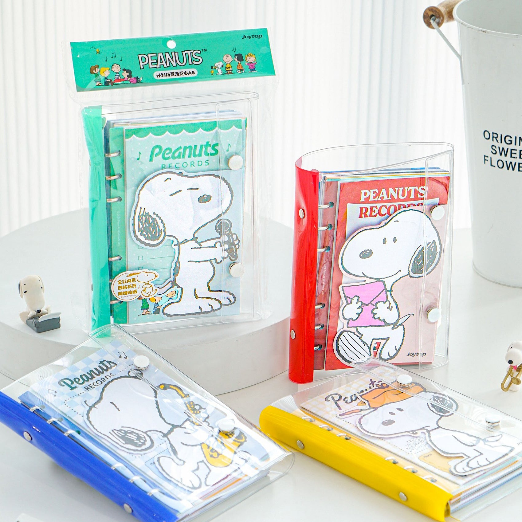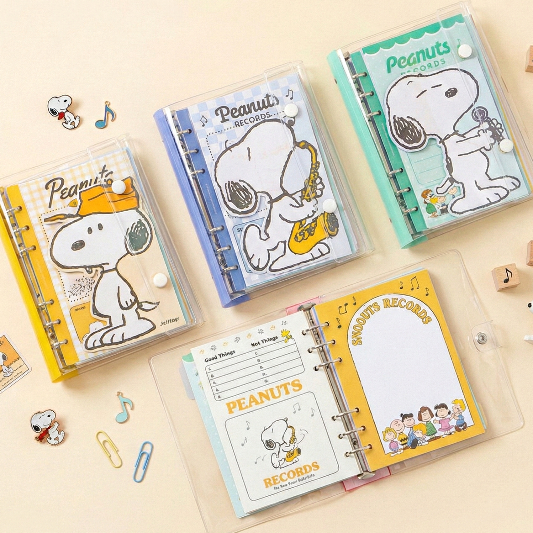 Organize your days with Snoopy’s musical charm! This transparent PVC binder keeps your notes dirt-resistant and waterproof, while inside you’ll find 72 themed pages perfect for to-do lists, journaling, and brainstorming. Each binder includes a fold-out leaflet insert plus a Peanuts sticker sheet for extra fun. A complete set that’s as functional as it is adorable!