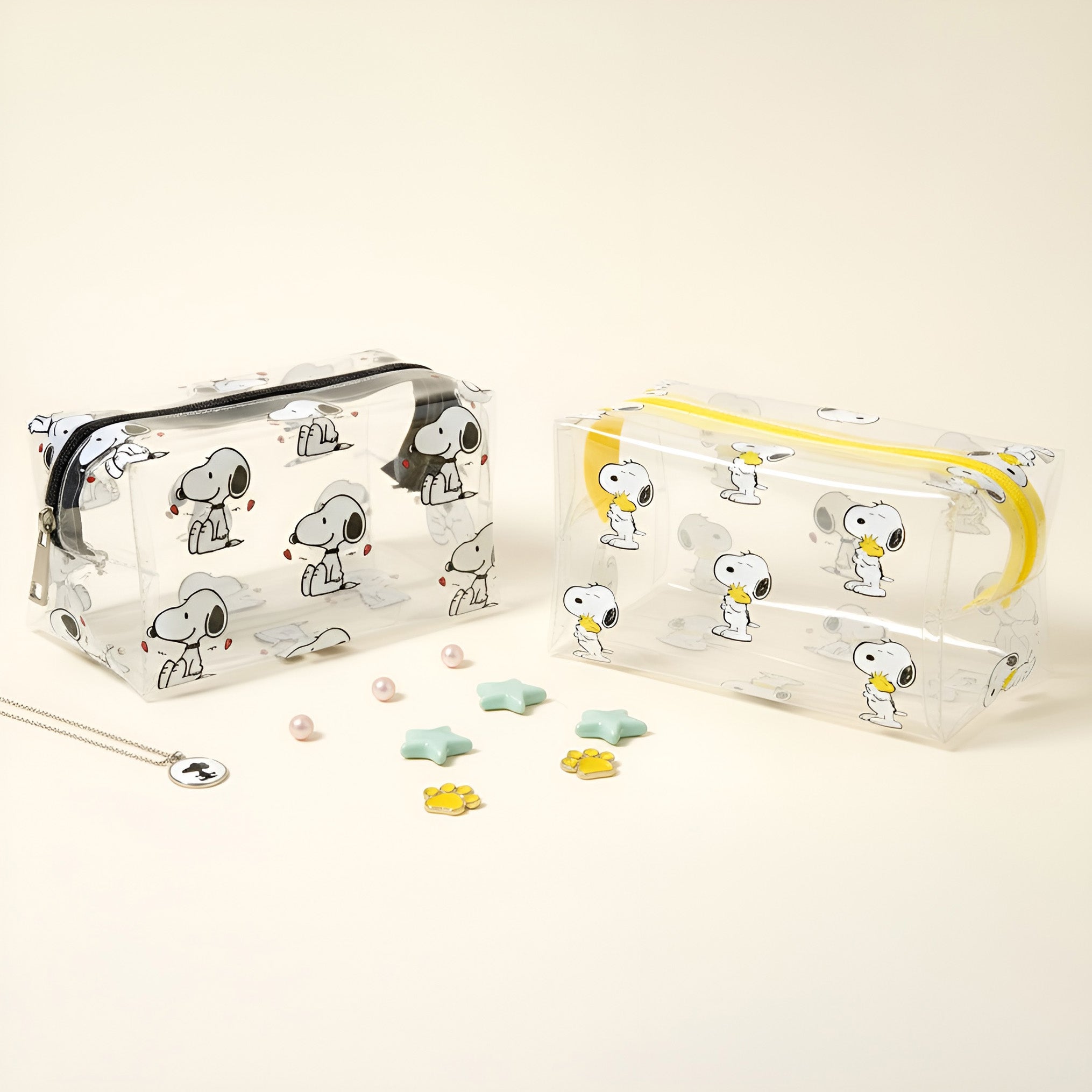 Stay organized with a touch of classic charm thanks to the Peanuts Snoopy Travel Pouch – your new favorite sidekick for everyday adventures! Available in two adorable designs, each pouch features a playful Snoopy pattern and a color-coordinated zipper that adds a pop of fun. Made from durable, waterproof PVC, it keeps your essentials safe, dry, and easy to find with its lightweight, see-through design. Whether you're packing stationery, makeup, or travel must-haves, this pouch has you covered in both cuteness and convenience!