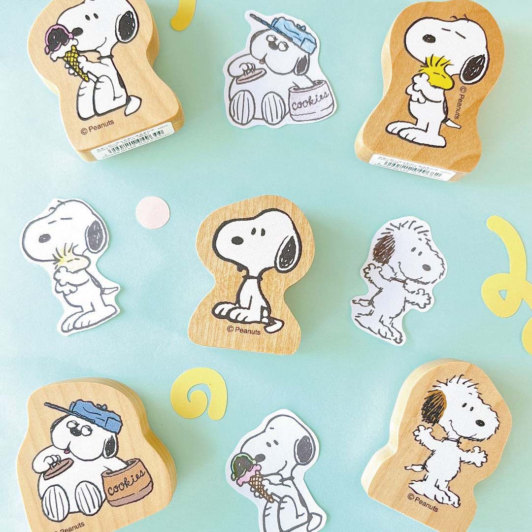 Add a sprinkle of Peanuts charm to your crafts with the Peanuts Snoopy Wood Piece Stamps! ✨ Made by Japanese brand Kodomo No Kao, these sturdy wood stamps feature Snoopy in eight lovable designs — from typing on his typewriter and hugging Woodstock 💛, to snacking on cookies and soaring as a flying ace! Each stamp delivers crisp, clean lines to brighten up your journals, planners, and snail mail.