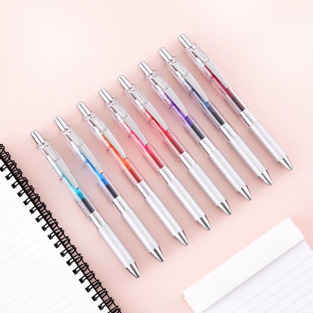 Experience effortless writing with the Pentel EnerGel Infree – a sleek, transparent-body gel pen that lets you see the ink color at a glance!