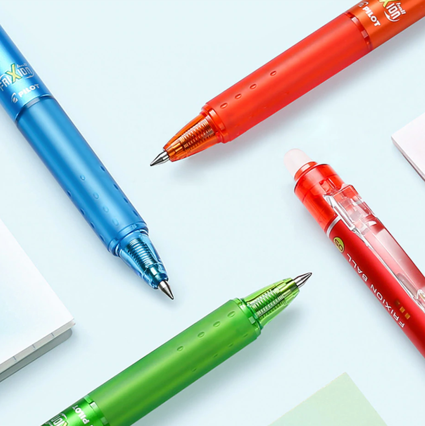 Rewrite without a trace with the Pilot FriXion Ball Knock Gel Pen! This deluxe retractable pen from the beloved FriXion series features a sleek, stylish body and smooth-flowing thermo-sensitive ink that disappears with a simple rub. Just flip the pen and use the built-in eraser tip—no shavings, no mess, just clean corrections! Perfect for notes, planners, and endless edits. ✍️✨