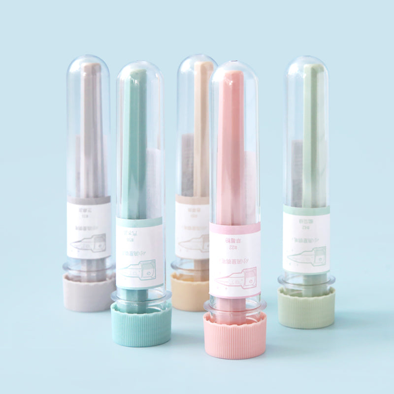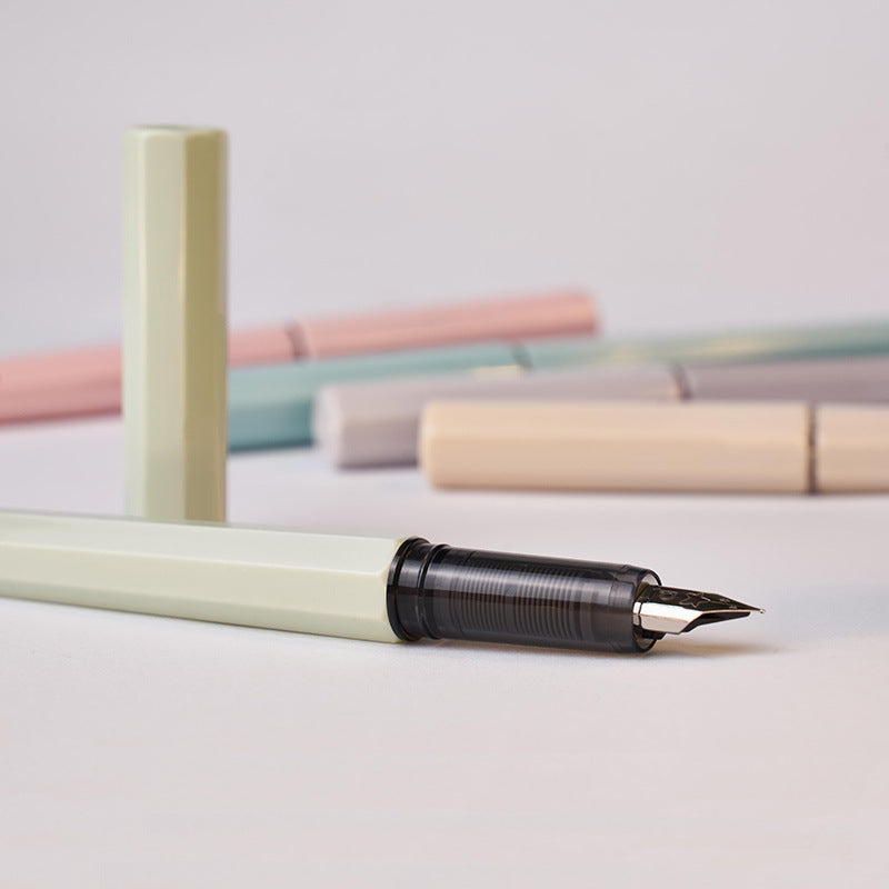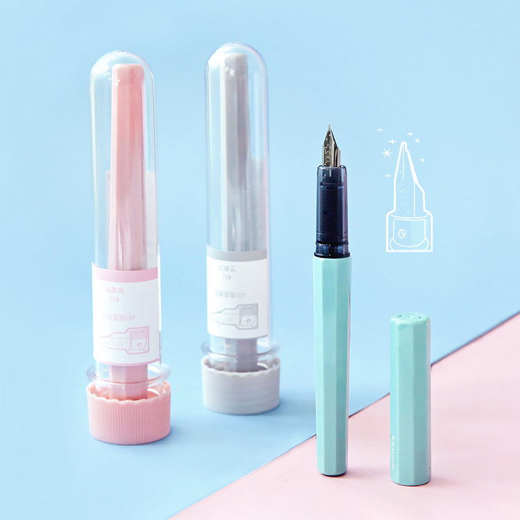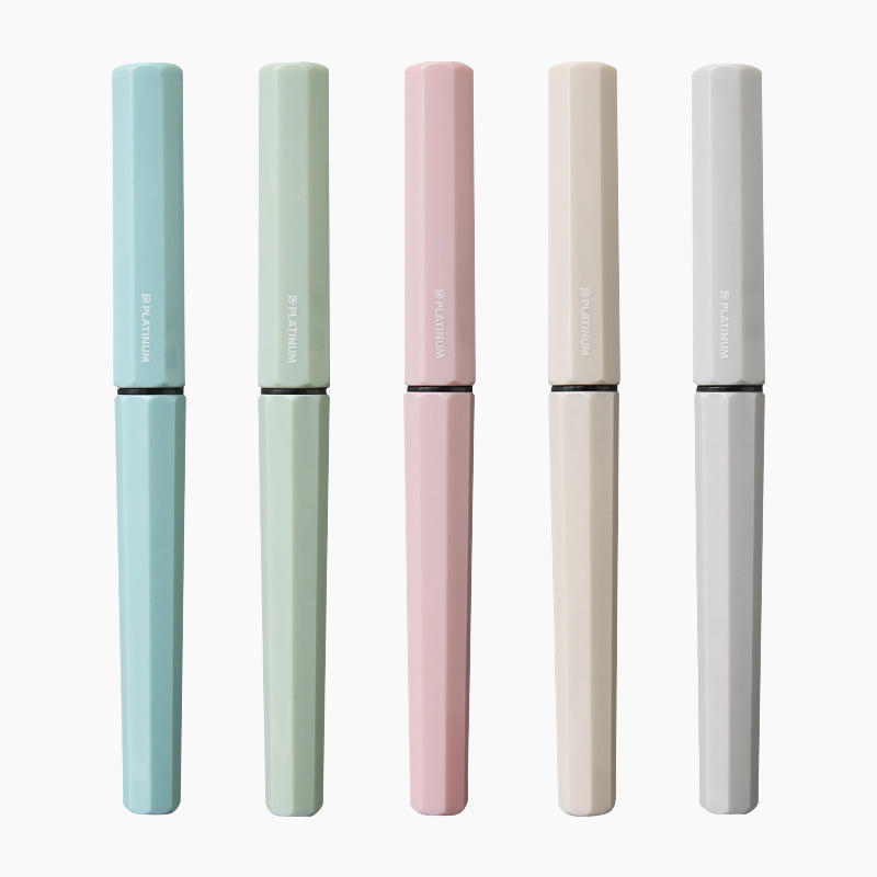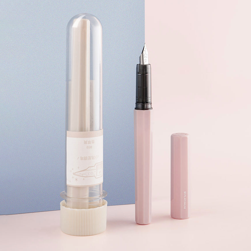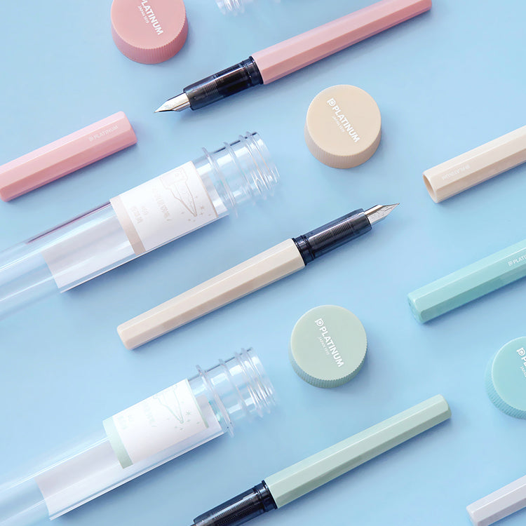 The Platinum Falling Star is a lightweight and comfortable fountain pen. Its fine tip is smooth and resistant and it has a star pattern engraved. The octagonal barrel prevents the pen from rolling when placed on a flat surface. It has a sliding air cap, a special regulator to avoid leakage, and a quick-release nib for easy cleaning. It comes in centrifuge tube packaging making it a good option for a gift. Enjoy the 5 elegant pastel barrel colors of the Falling Star edition!