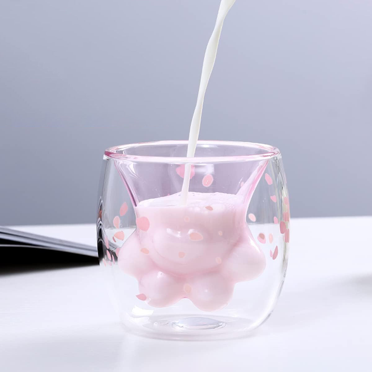 Take your sips to a whole new level of cuteness with the Sakura Cat Paw Coffee Cup! This whimsical glass features a double-layered design adorned with soft cherry blossom petals—and the magic happens when you pour in your drink: the inner layer reveals an adorable cat paw with a pink tint that comes to life with every pour! 🌸☕