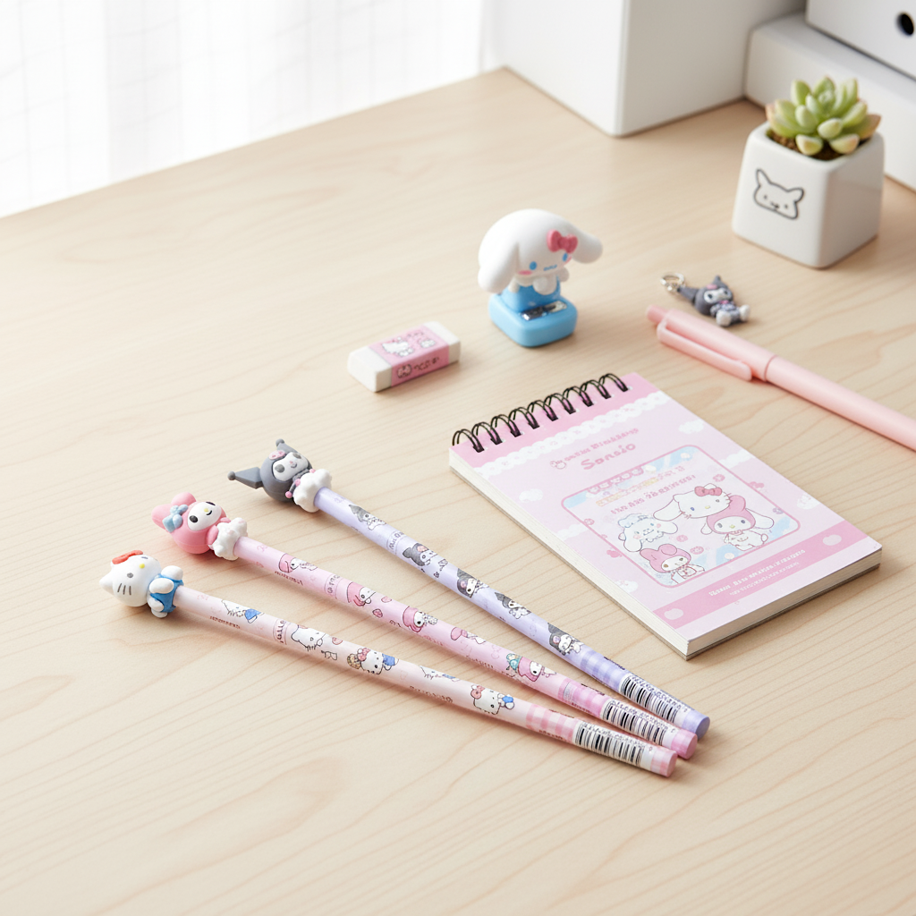 Turn every page into a masterpiece with the Sanrio Characters 2B Pencil—where charm meets creativity! This adorable pencil features a sleek wooden barrel wrapped in playful Sanrio illustrations, and it's topped with a cute 3D figurine of your favorite character for an extra dose of fun! 🖍️💕