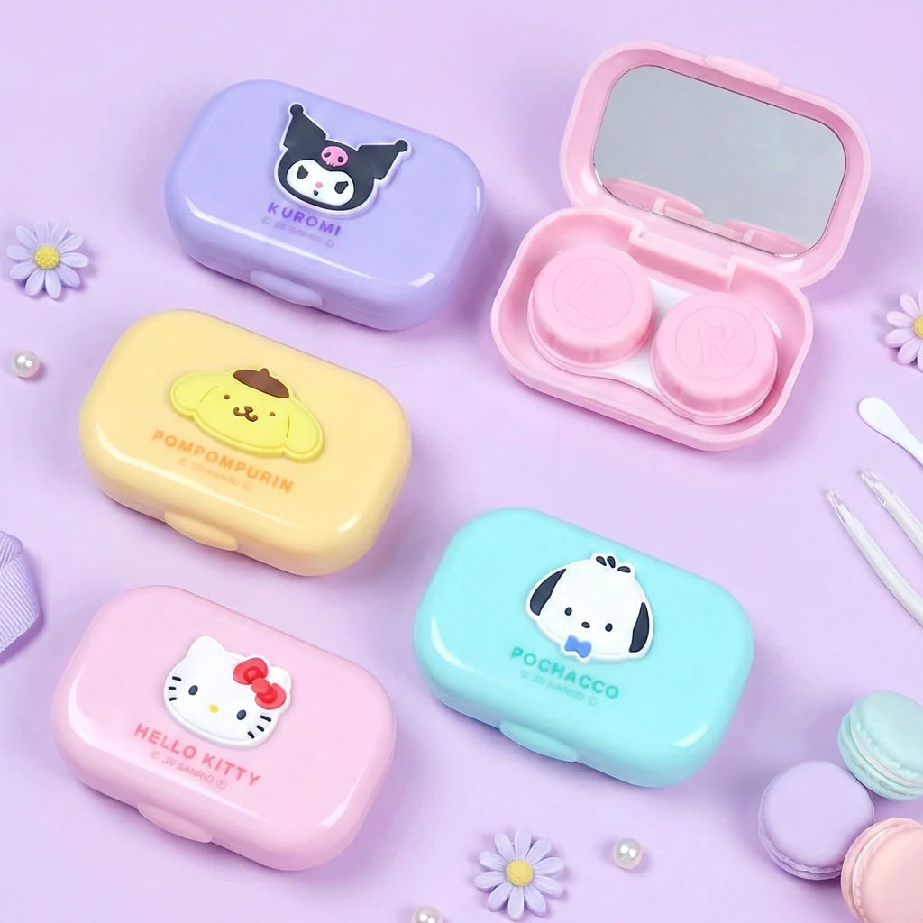 Keep your eyes bright and your style even brighter with the most adorable travel companion! These Sanrio Characters Contact Lens Cases are designed for the ultimate "kawaii" aesthetic while keeping your lens routine safe and hygienic. Choose from the sweet Hello Kitty in pastel pink, the mischievous Kuromi in soft purple, or the dreamy Cinnamoroll in sky blue. Each sleek, pocket-sized case features a 3D character emblem and opens to reveal a complete, color-coordinated care kit. Whether you're heading to a sleepover or jet-setting on a new adventure, these mini sets ensure you have everything you need for clear vision and cute vibes!