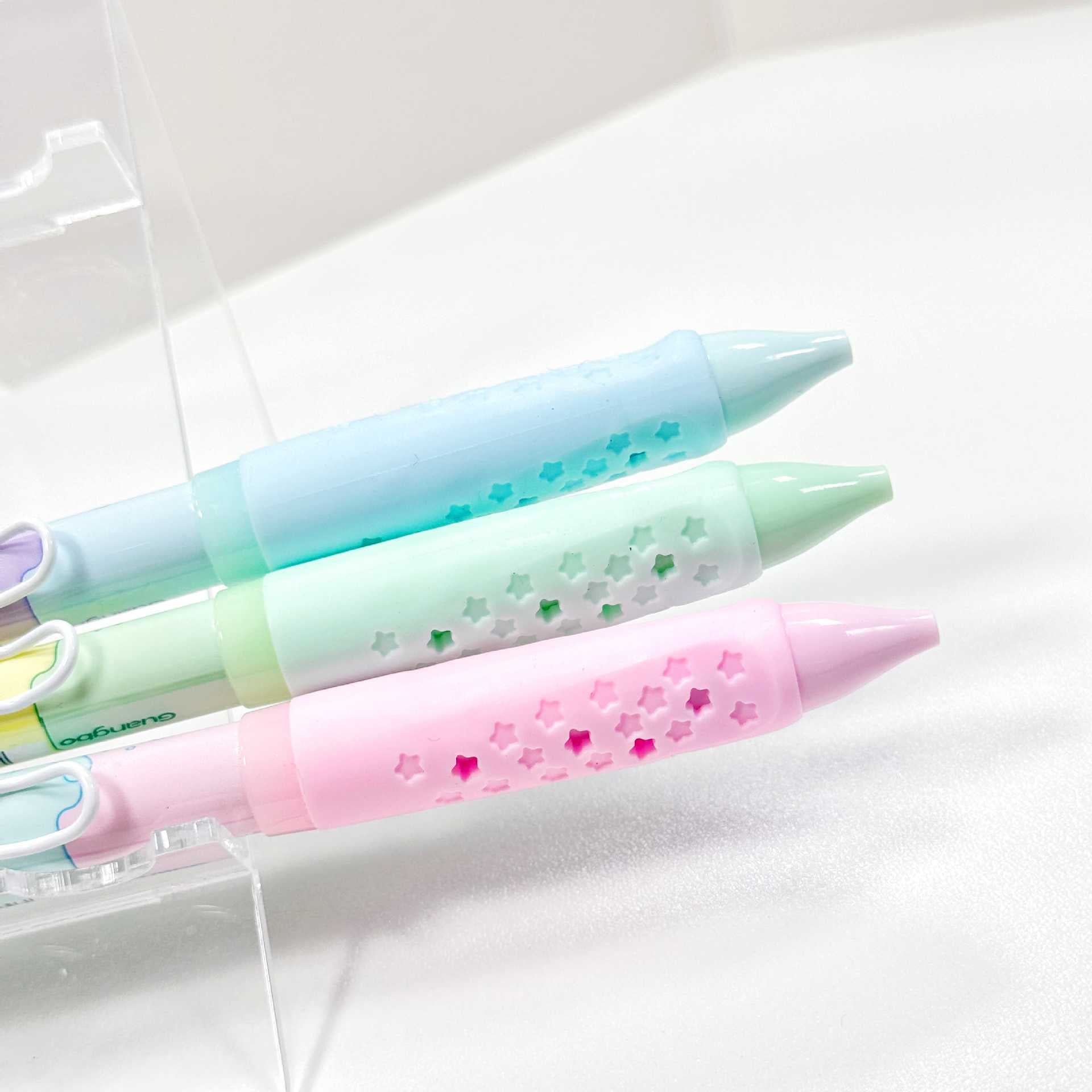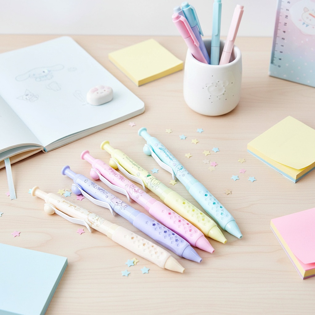 Add a burst of kawaii charm to your writing with this dreamy gel pen collection! Each pen features a pastel two-tone body with star-shaped grips for cozy comfort, plus your favorite Sanrio friends like Hello Kitty, My Melody, Kuromi, Cinnamoroll, Pompompurin, and Pochacco. With smooth black ink and a fine 0.5 mm tip, it’s perfect for journaling, notes, or simply making everyday writing a little more magical.