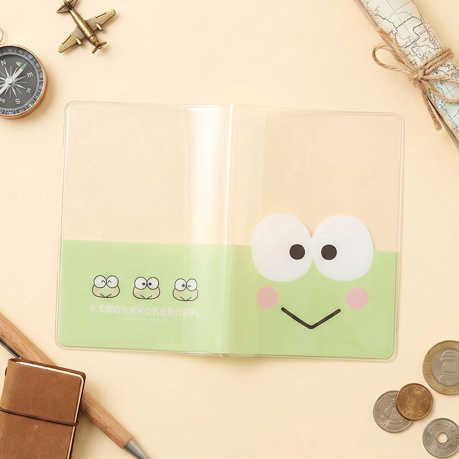 Let your travel days hop with joy thanks to this cheery Keroppi passport cover! With big curious eyes, rosy cheeks, and a bright green base, this waterproof PVC case keeps your passport (or B7 notebook!) cozy and cute. Interior pockets and an outer sleeve mean there's room for everything from tickets to travel doodles! ✈️💚