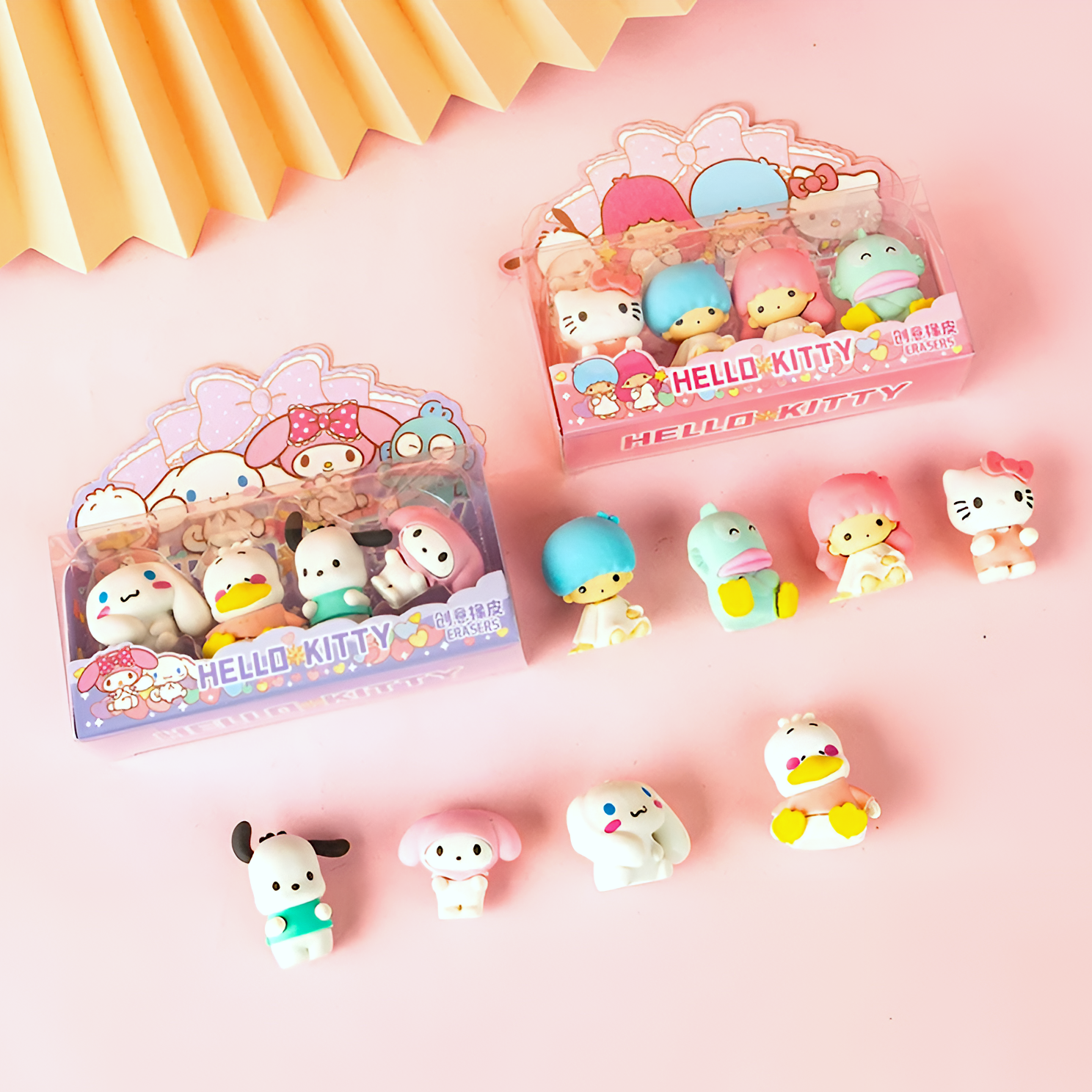 ✔ 4 Adorable Erasers per Set – Choose from 2 different sets of lovable Sanrio characters 🐰🍓