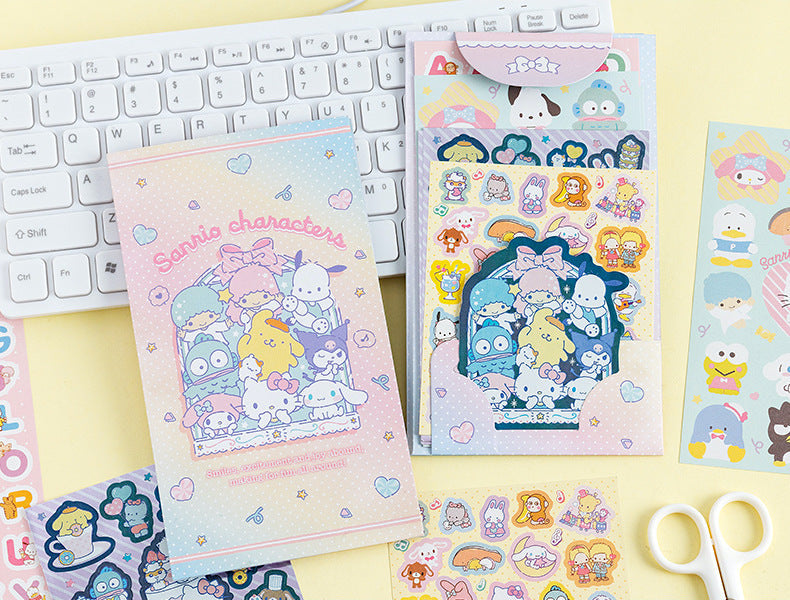 Treat yourself or a fellow Sanrio lover to the Sanrio Characters Sticker Set! This adorable folder-style collection includes 8 sheets filled with your favorite Sanrio friends, fun letter stickers for personalizing, and a special large sticker with dazzling foil details. Choose from 4 beloved characters—or collect them all for the ultimate Sanrio sticker treasure trove! Perfect for decorating journals, gifts, and everything that needs a sprinkle of kawaii magic. ✨🐰