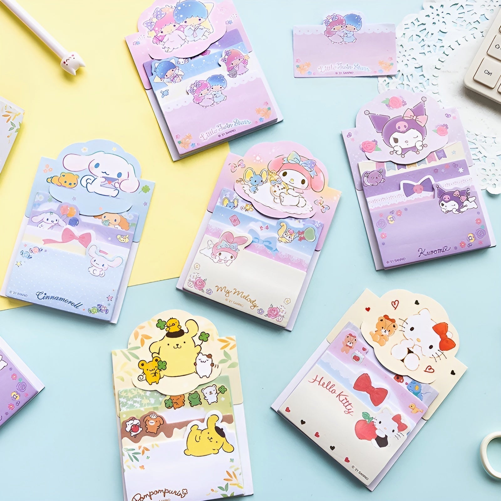 Dive into a whimsical world of cuteness with the Sanrio Characters Sticky Notes! Featuring a delightful cast of your favorite characters—Hello Kitty, My Melody, Cinnamoroll, and more—this set is perfect for adding a pop of charm to your journal, planner, or notes. Whether you're jotting down a quick reminder or capturing your thoughts, these sticky notes will make every note-taking moment extra special.