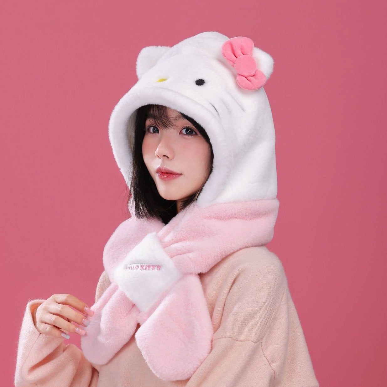 Sanrio Plush Hooded Scarf with Ears - Hello Kitty