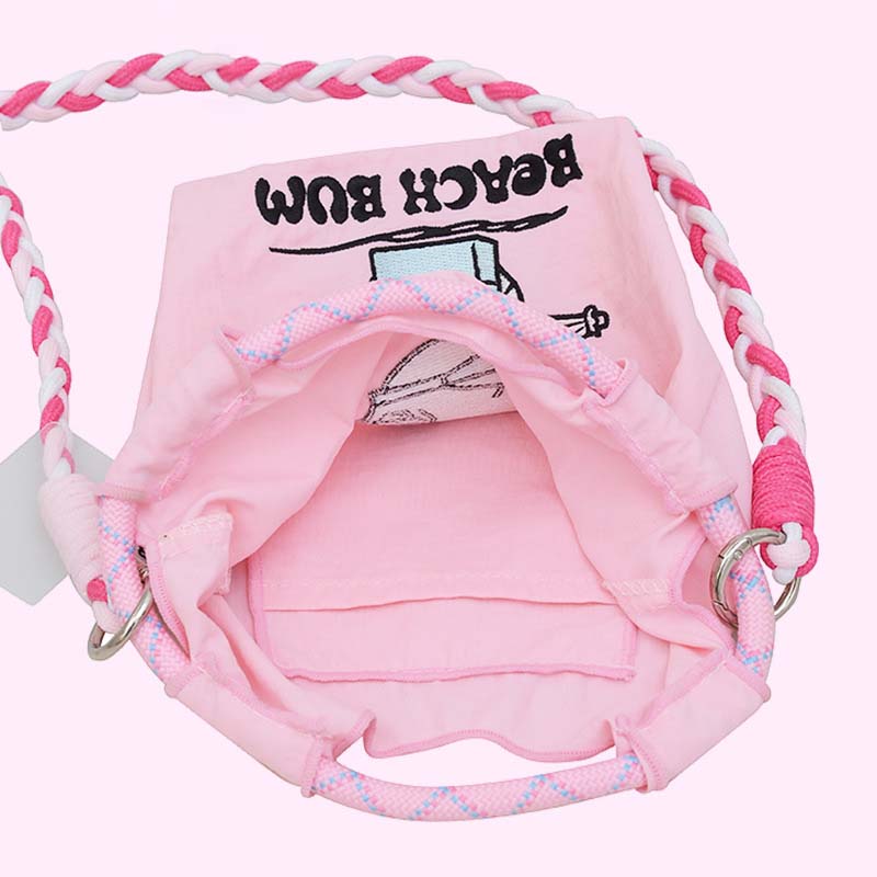 Breeze through your day with the Snoopy Chill Vibes Sling Bag in soft pink! This mini-sized bag is perfect for carrying just the essentials while keeping your look effortlessly cute. Featuring an embroidered Snoopy all set for the beach with his umbrella, cap, and bag, plus the phrase Beach Bum for the ultimate laid-back vibe.