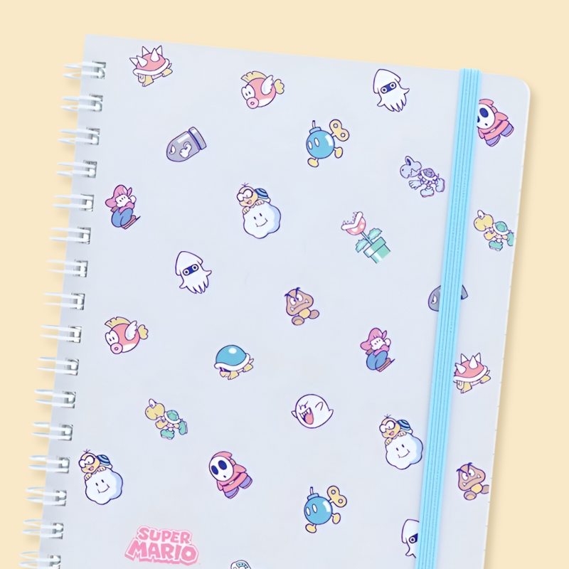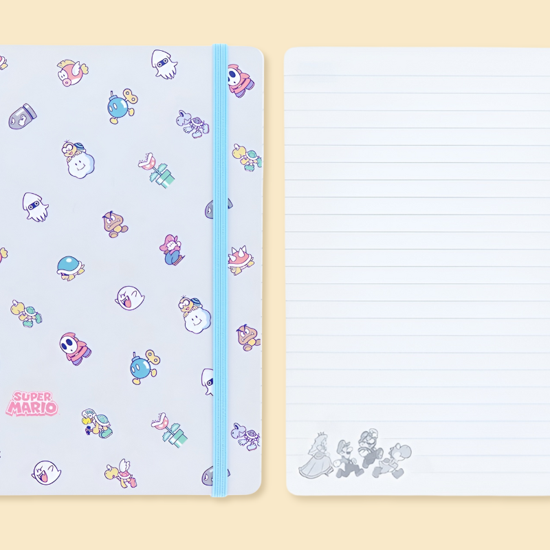 Get ready for a page full of playful mischief with this limited edition Super Mario Teki notebook from Sun-Star Japan! Featuring a dreamy pastel blue cover sprinkled with iconic Mario enemies—from Shy Guys to Boos—this spiral-bound notebook is both quirky and functional. With 120 lined pages, themed corner illustrations, and a secure elastic band, it's perfect for school notes, daily logs, or whimsical writing sessions. 🌈📝
