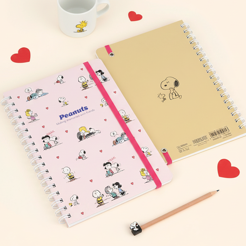 Sprinkle your days with sweetness and nostalgia with this light pink Snoopy notebook from Sun-Star Japan! Featuring heartwarming Peanuts moments with Snoopy, Woodstock, and friends, this grid-lined spiral notebook is a love letter to friendship. With 120 pages, a secure elastic band, and a soft pastel cover, it's the perfect companion for heartfelt notes, lists, or journaling moments that matter. 🐾💌