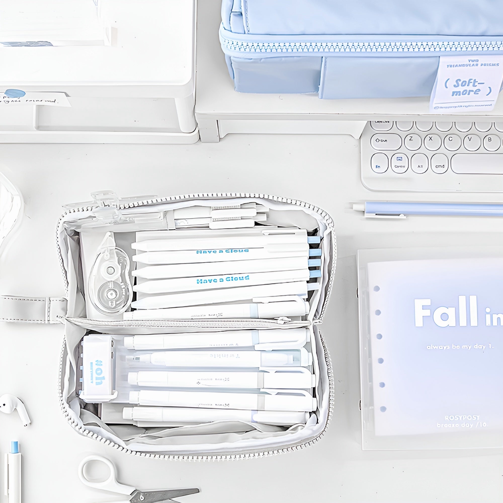 Unlock the magic of tidy essentials with the Sweet Reverie Large Capacity Pencil Case! Designed for the stationery lover who adores both form and function, this pastel-toned beauty transforms from a sleek rectangle into two triangular prisms for easy access and stylish display. With 8 thoughtfully arranged compartments, including a pen insert area and snap-button pocket, your tools will always be beautifully in place. ✨📐