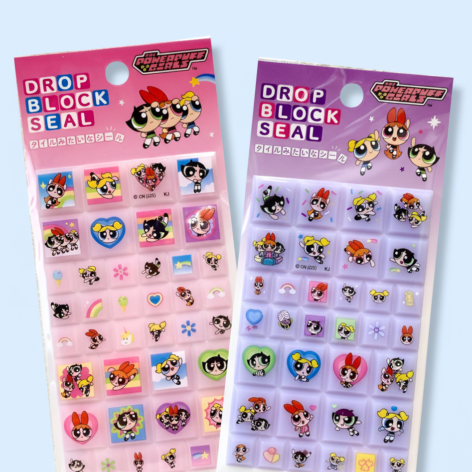 Fight crime—and decorate everything—with a dash of sugar, spice, and everything nice! These unique Powerpuff Girls Drop Block Stickers feature Bubbles, Blossom, and Buttercup in adorable, action-packed poses across 52 glossy, tile-style stickers. Each set includes a mix of square and rectangular designs with a fun 3D pop thanks to the glossy ABS resin. Cut and customize your sheet to add flair to journals, phone cases, and pencil pouches! 💕