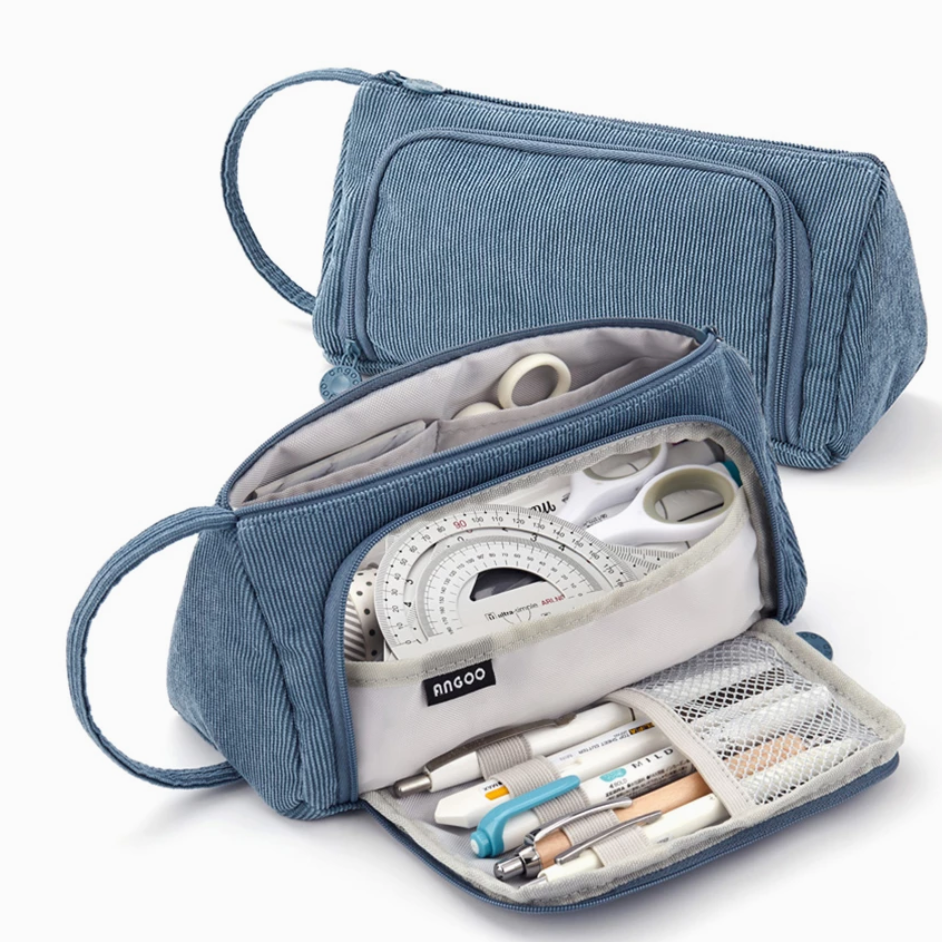 Stay organized in style with the Triangle Corduroy Pencil Case, designed for easy access and efficient storage. Its unique side-opening mesh pocket lets you quickly grab your most-used writing tools, while the main compartment includes two smaller pockets for erasers, sticky notes, or memo pads.