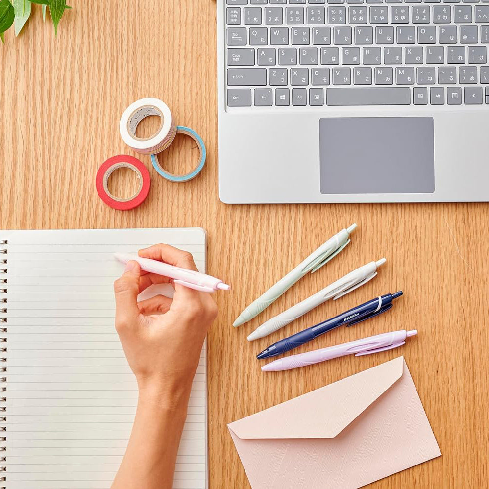 Meet the world-famous performance of the Uni Jetstream Standard Ballpoint Pen, now dressed in the softest pastel colors! This pen is renowned for its revolutionary low-viscosity ink, which delivers the rich, vivid line of a gel pen but dries as fast as a traditional ballpoint. The classic 0.5 mm tip is filled with archival-quality black ink that is waterproof, fade-resistant, and perfect for official documents. Choose from three beautiful pastel barrel colors—Soft Purple, Soft Pink, or Sage Green—and experience the smoothest, most controlled writing of your life!