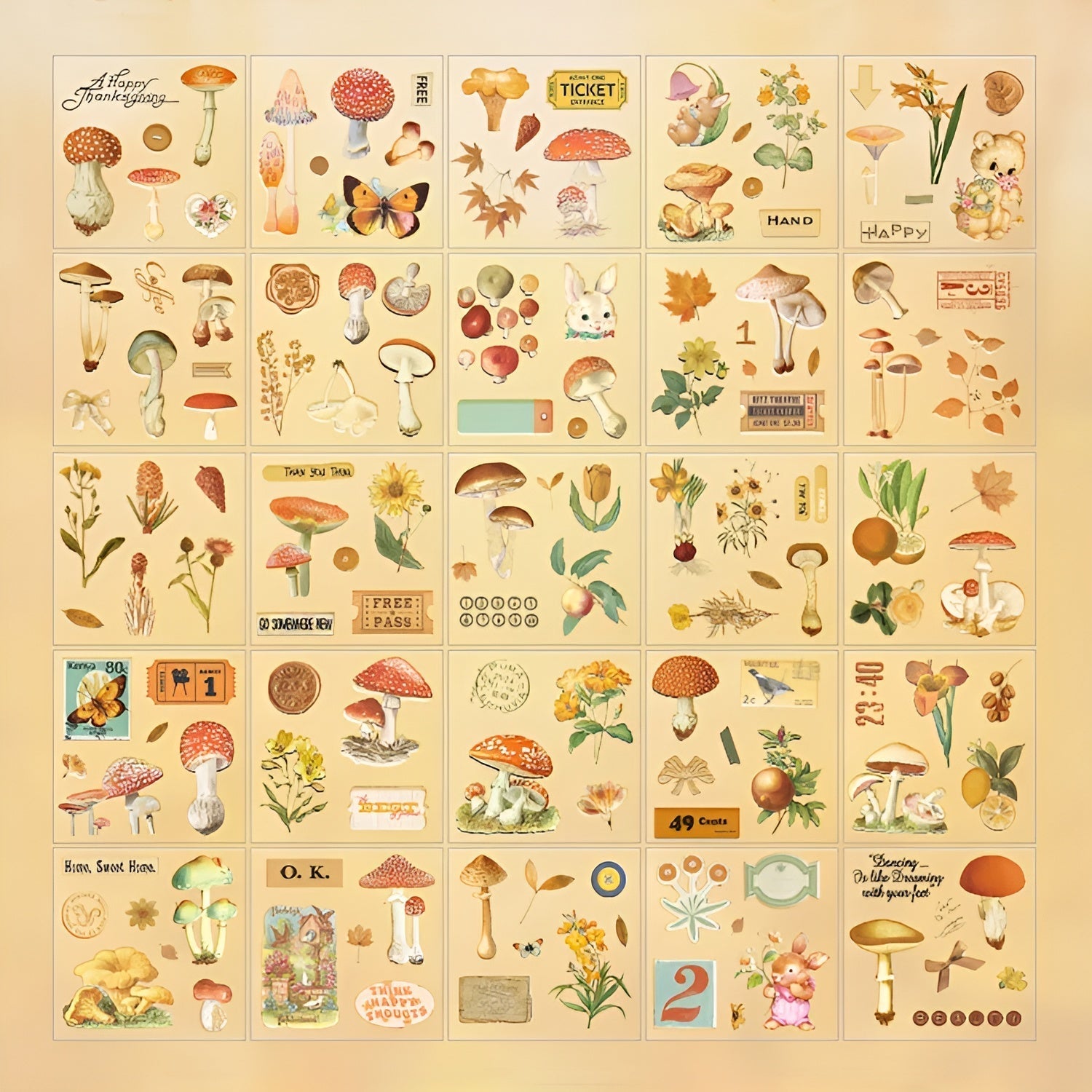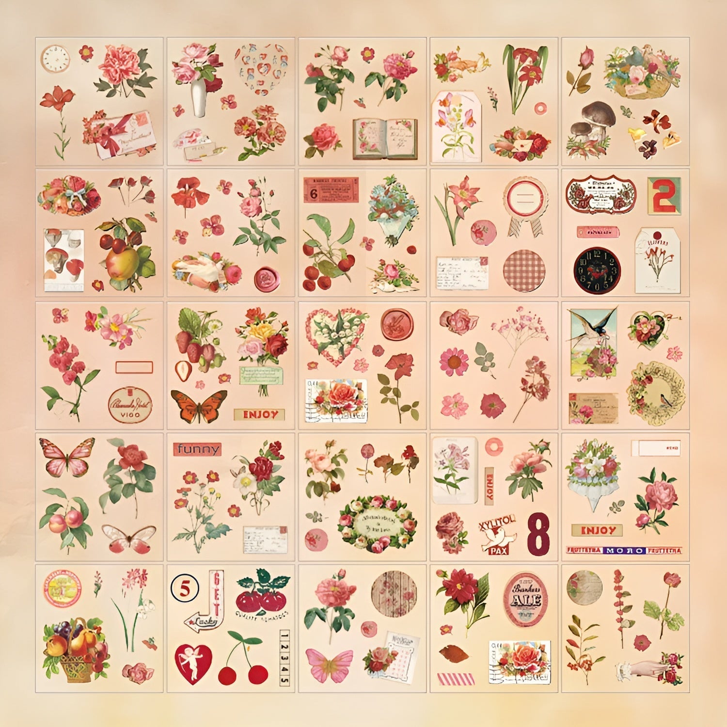 Vintage Nature Transparent Stickers - Large Boxed Set - 100 Pieces