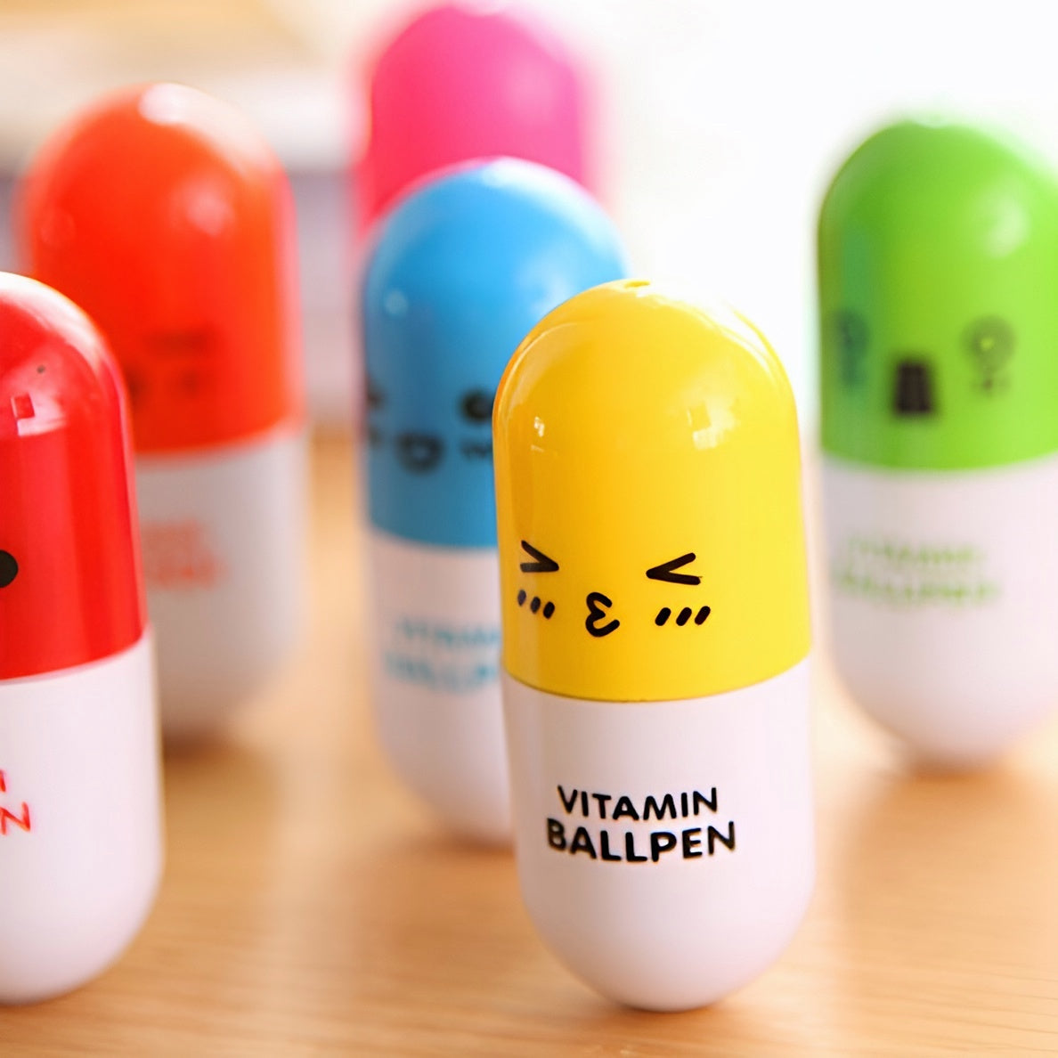 Compact, extendable, and packed with personality, this quirky Vitamin Pill Ballpoint Pen is the perfect writing companion for anyone who loves a touch of fun! Each vibrant pen features a unique facial expression, bringing joy to every note, doodle, or journal entry.