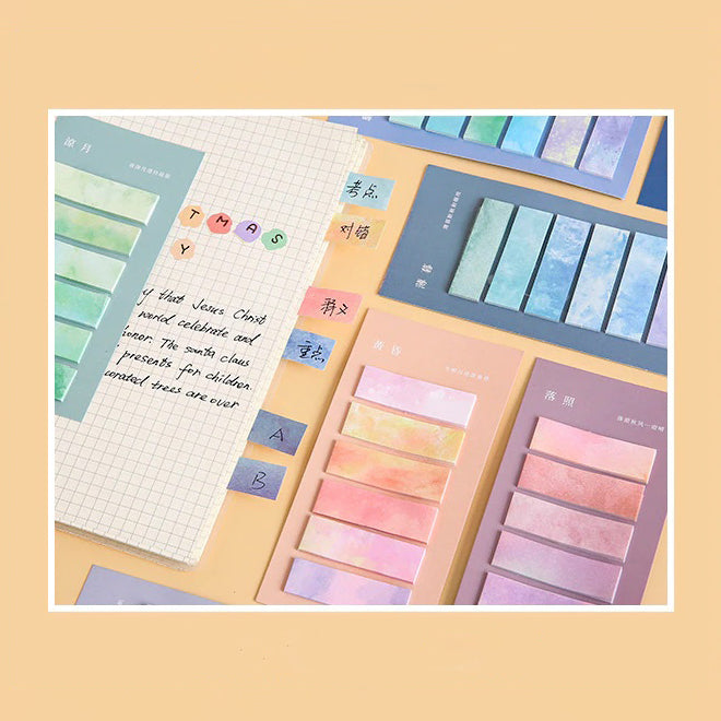 Add a splash of color to your notes, journals, and study sessions with the Watercolor Index Sticky Notes! With soft tie-dye hues and a practical tab shape, these sticky notes make organizing your ideas more vibrant and fun.