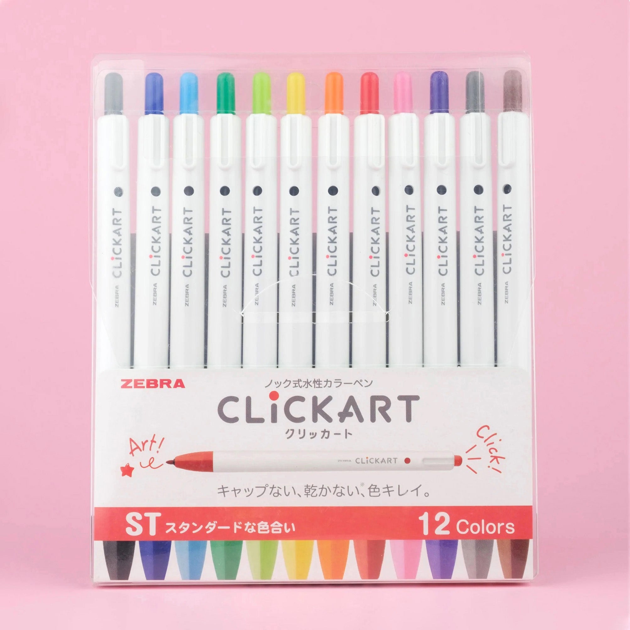 Experience the joy of felt tip coloring with the ease of a retractable pen! The Zebra Clickart Knock blends vibrant ink and innovative design into one smooth-writing, no-cap-needed superstar. Thanks to its moisture-absorbing technology, the ink won’t dry out for up to a year—as long as it’s clicked shut. Ideal for journaling, scrapbooking, note-taking, and doodling on the go!