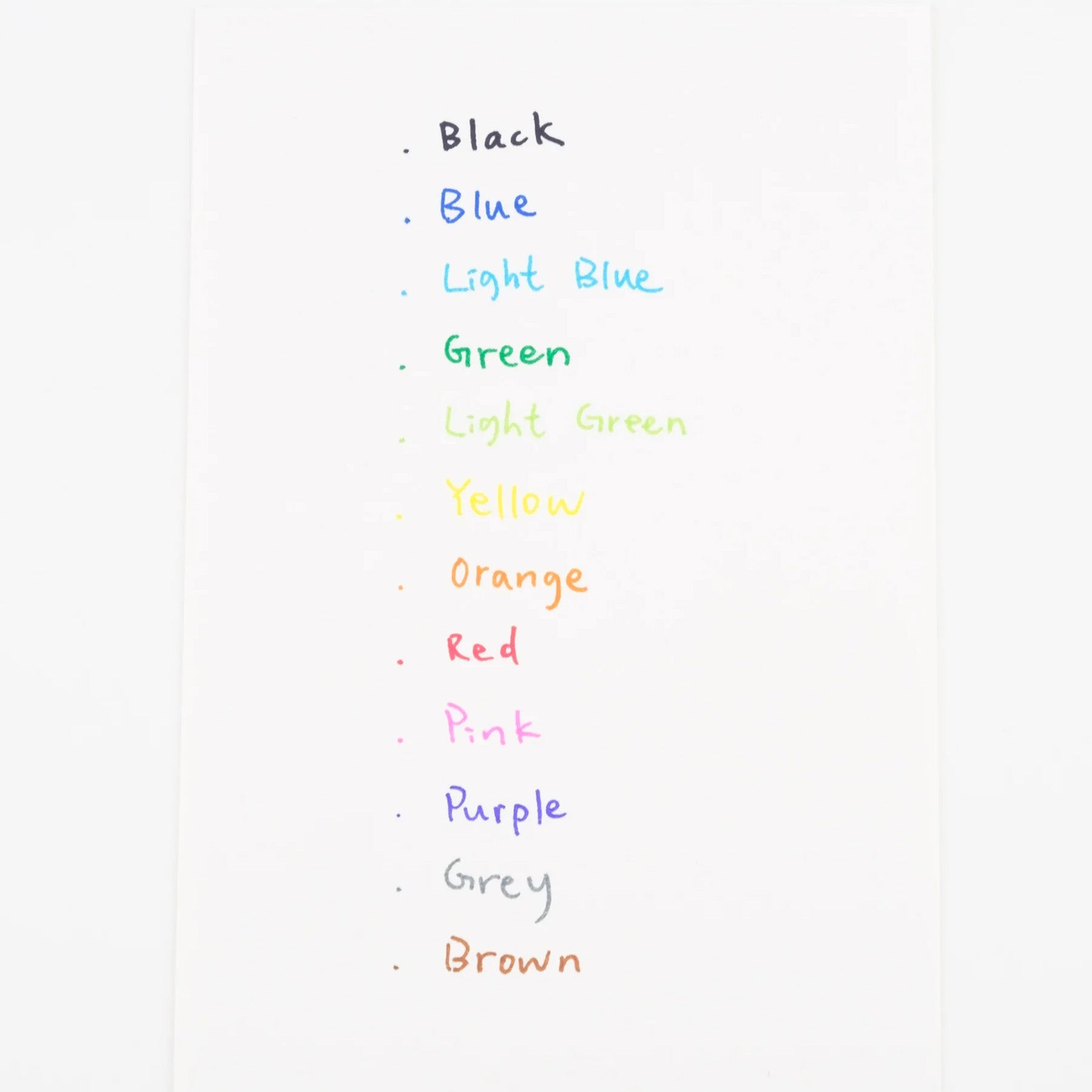 The Standard set includes 12 colors: Black, Blue, Light Blue, Green, Light Green, Yellow, Orange, Red, Pink, Purple, Gray, and Brown.