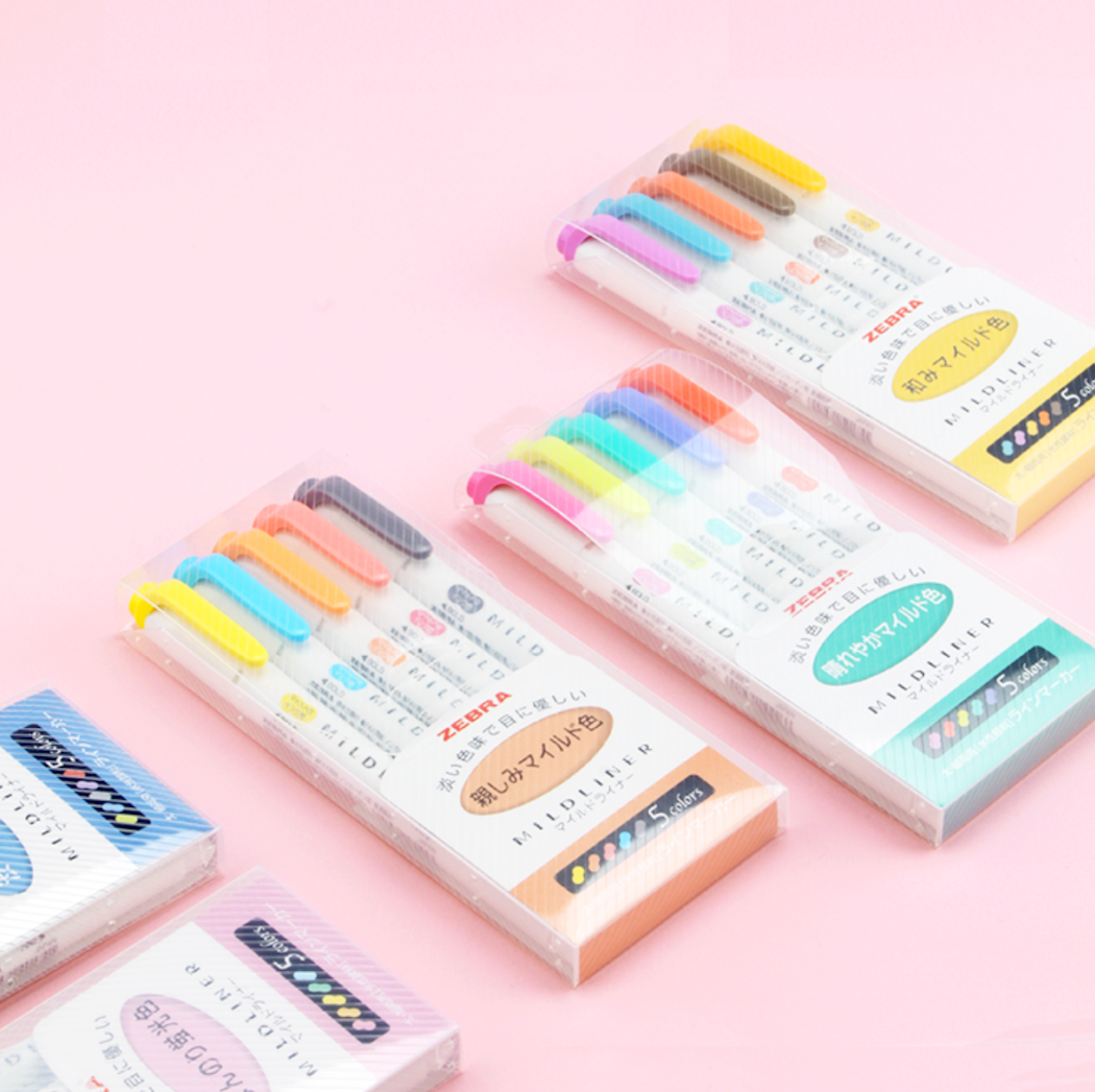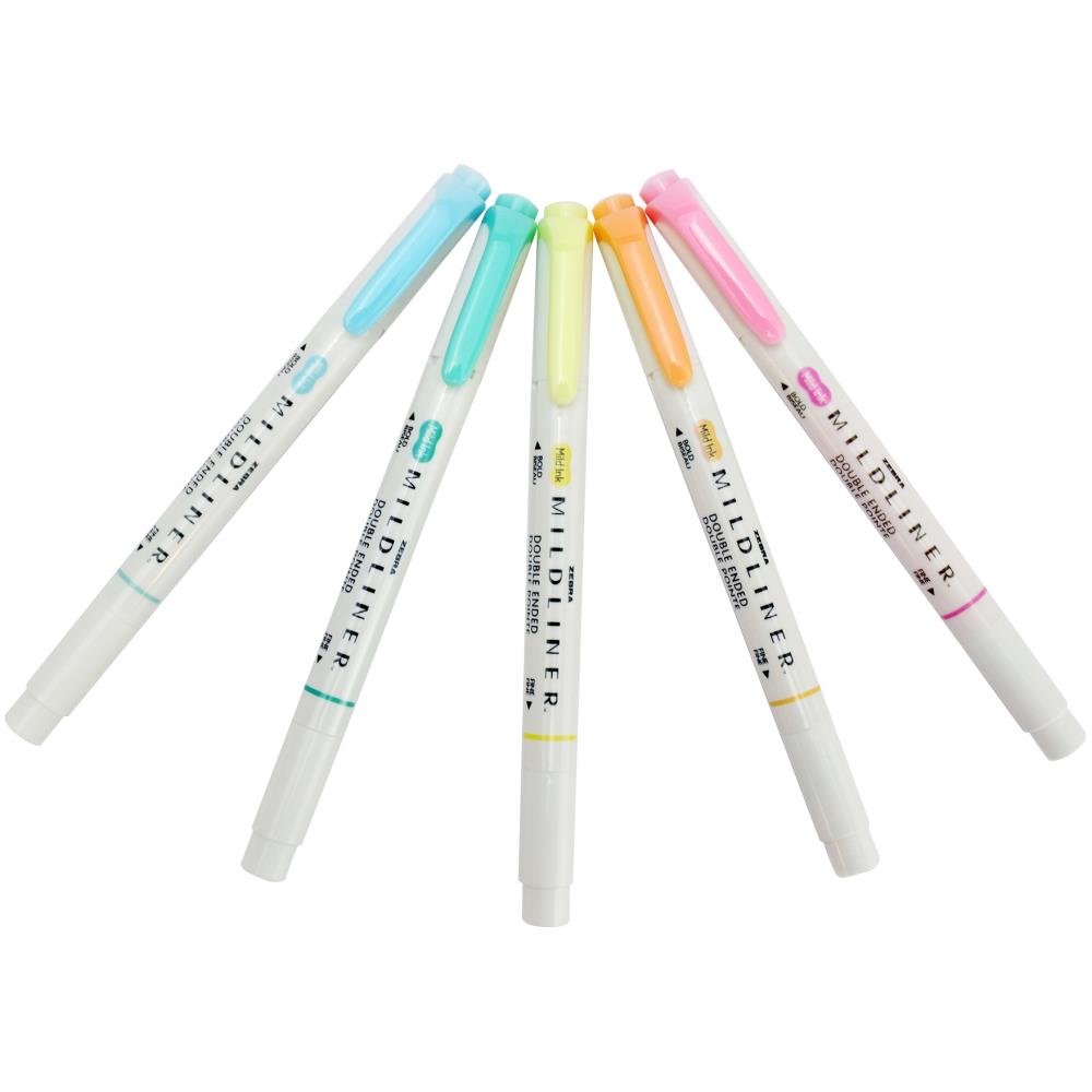 Zebra Mildliner Double Sided Highlighters - 5 Pastel Color Set