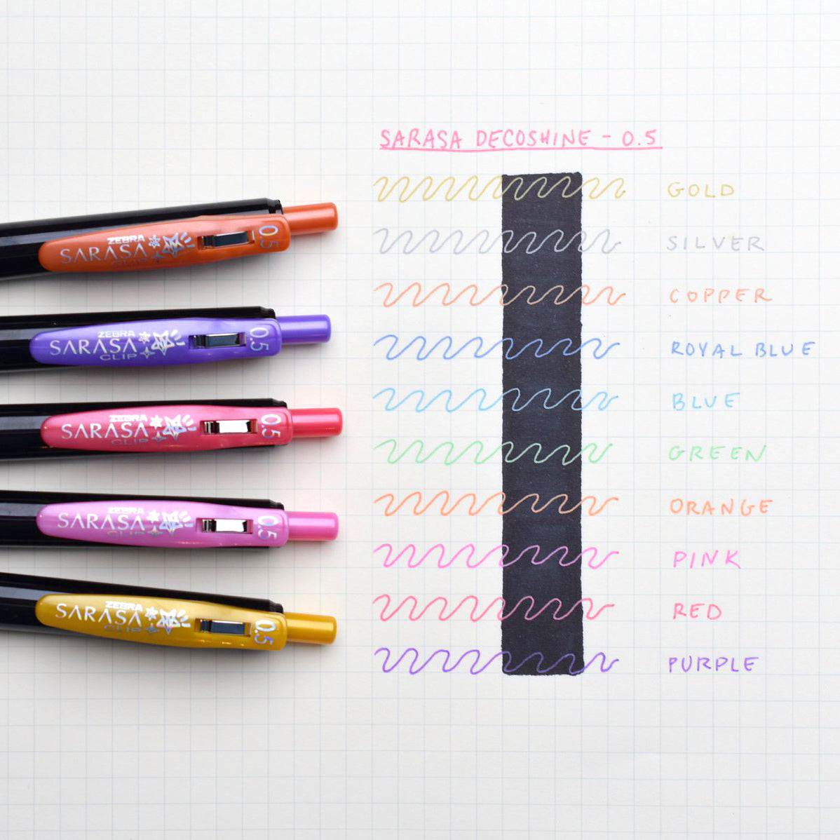 Add a pop of shimmer to your notes and art with the Decoshine Color Zebra Sarasa Clip Gel Pen! These sleek pens combine eye-catching metallic ink with the smooth, vivid quality of Zebra’s Sarasa gel ink—perfect for making your writing stand out on both white and black paper. Whether you're journaling, scrapbooking, or lettering, these pens are your new go-to for dazzling detail!